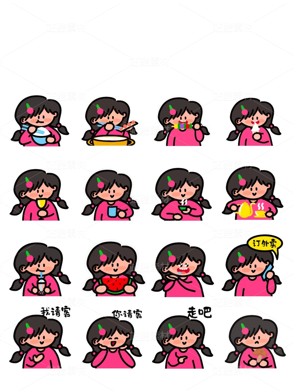 卡通人物表情包可爱女孩贴纸2:吃货篇