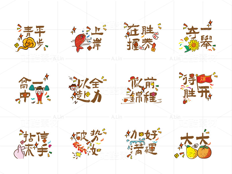 祝福语字体表情包 手绘贴纸 趣味谐音梗 高考祝福语