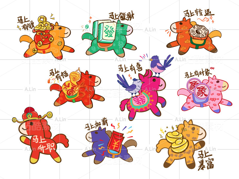 2026马年卡通IP表情包 贴纸 谐音梗祝福语 手绘EPS文件