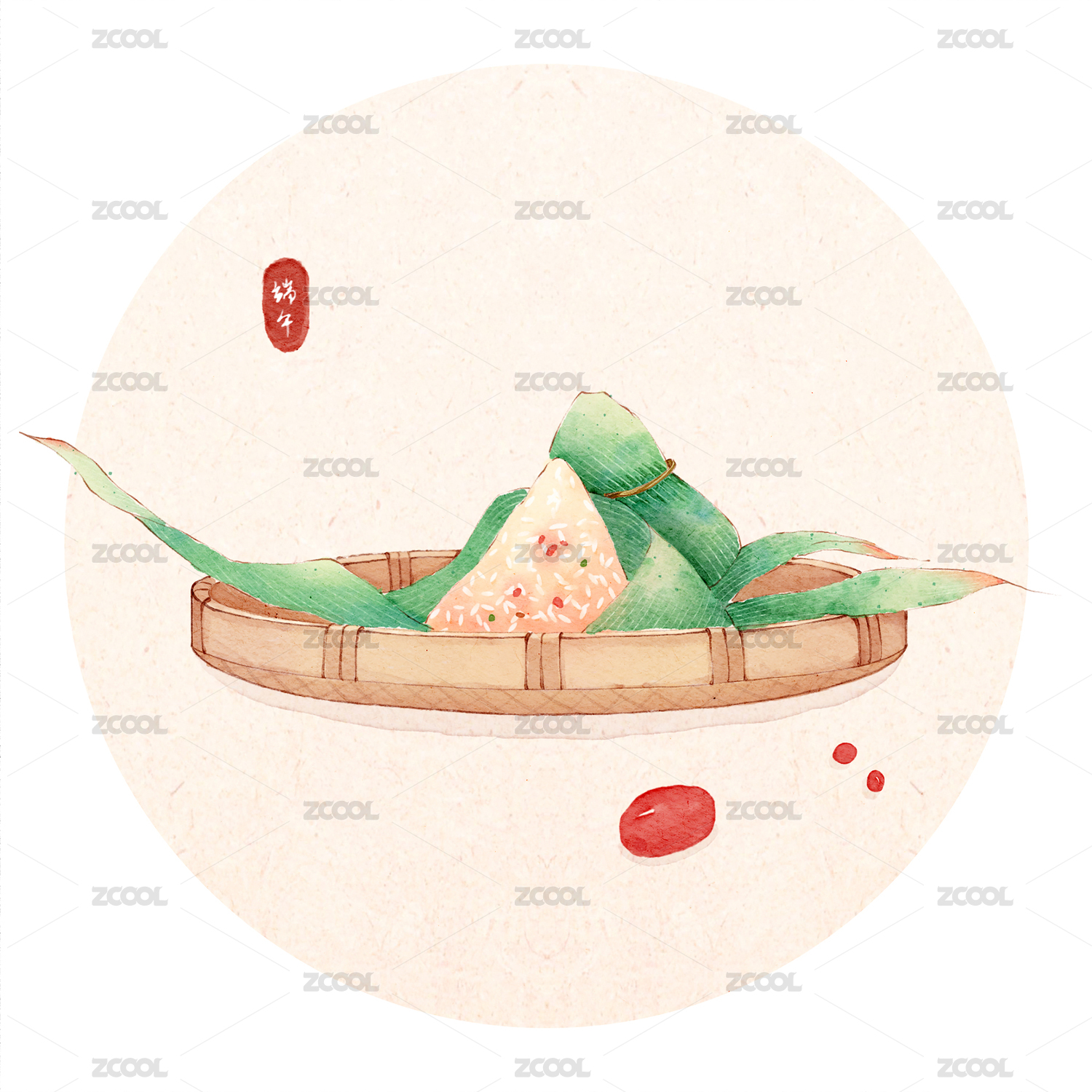 手绘水彩端午节一框红枣粽子