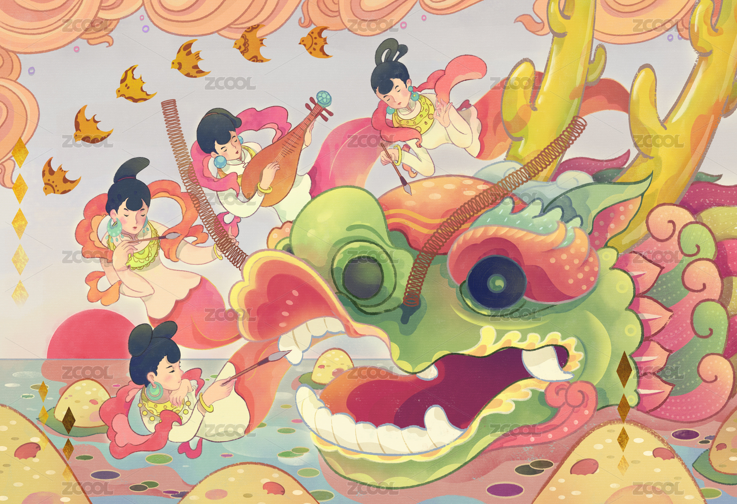 端午节仙女画龙头