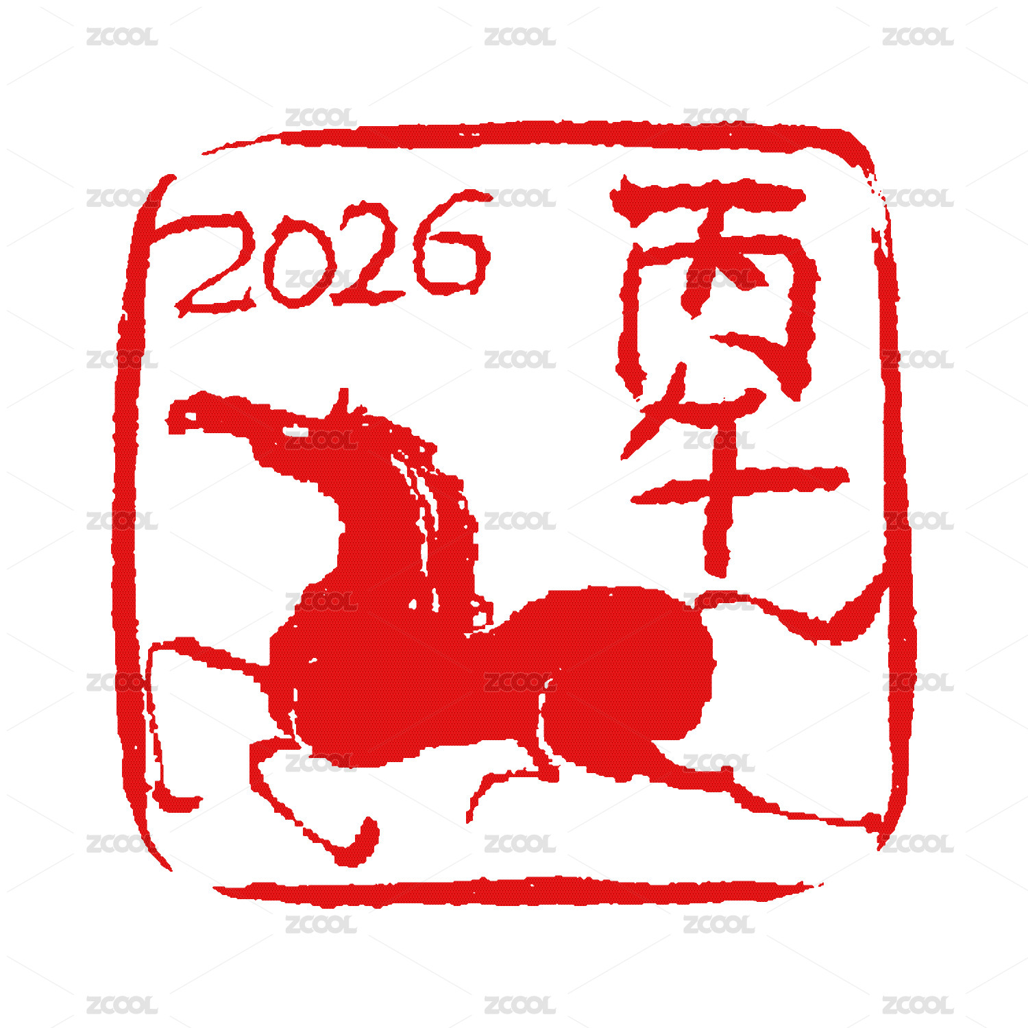 手绘红色印章-2026丙午马年插画