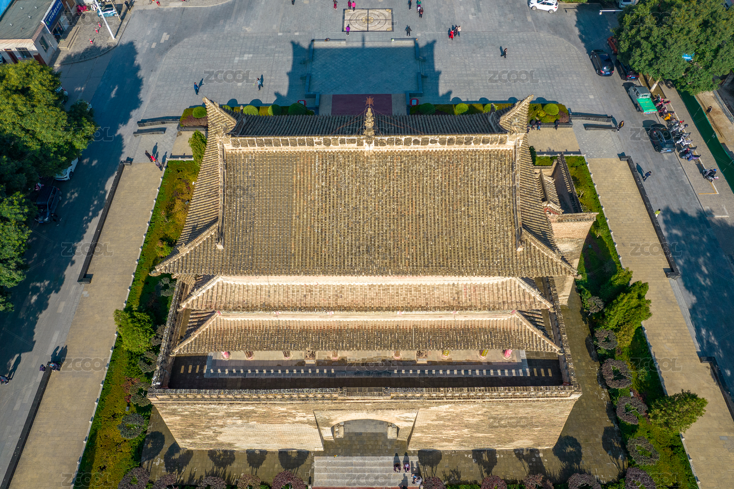 古城老街的青砖朱墙建筑