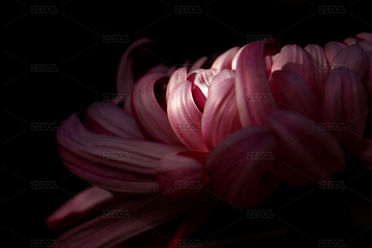 微光在粉红色菊花的局部上形成的光影效果