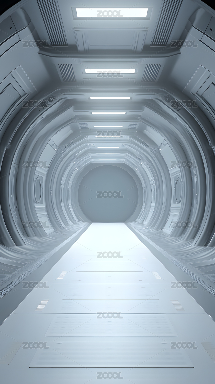 未来科技走廊空间设计与光影效果