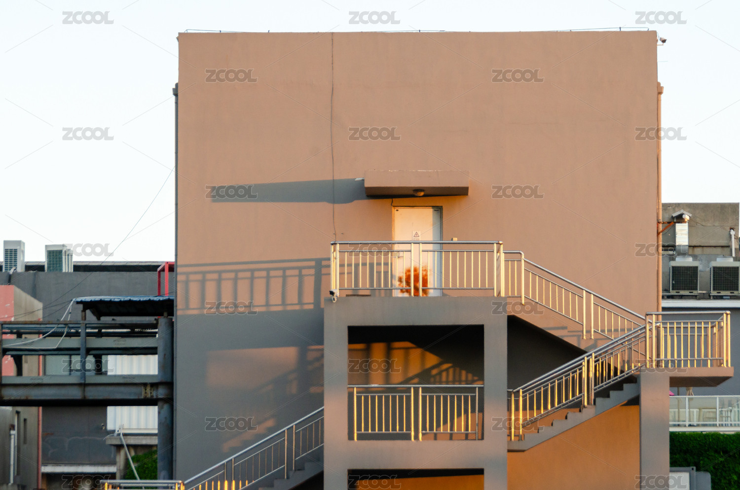 暖色调建筑室外楼梯光影效果