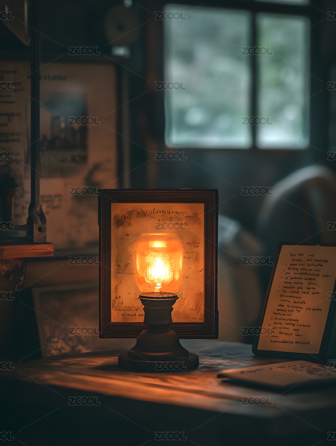 木质相框中的泛黄旧照片