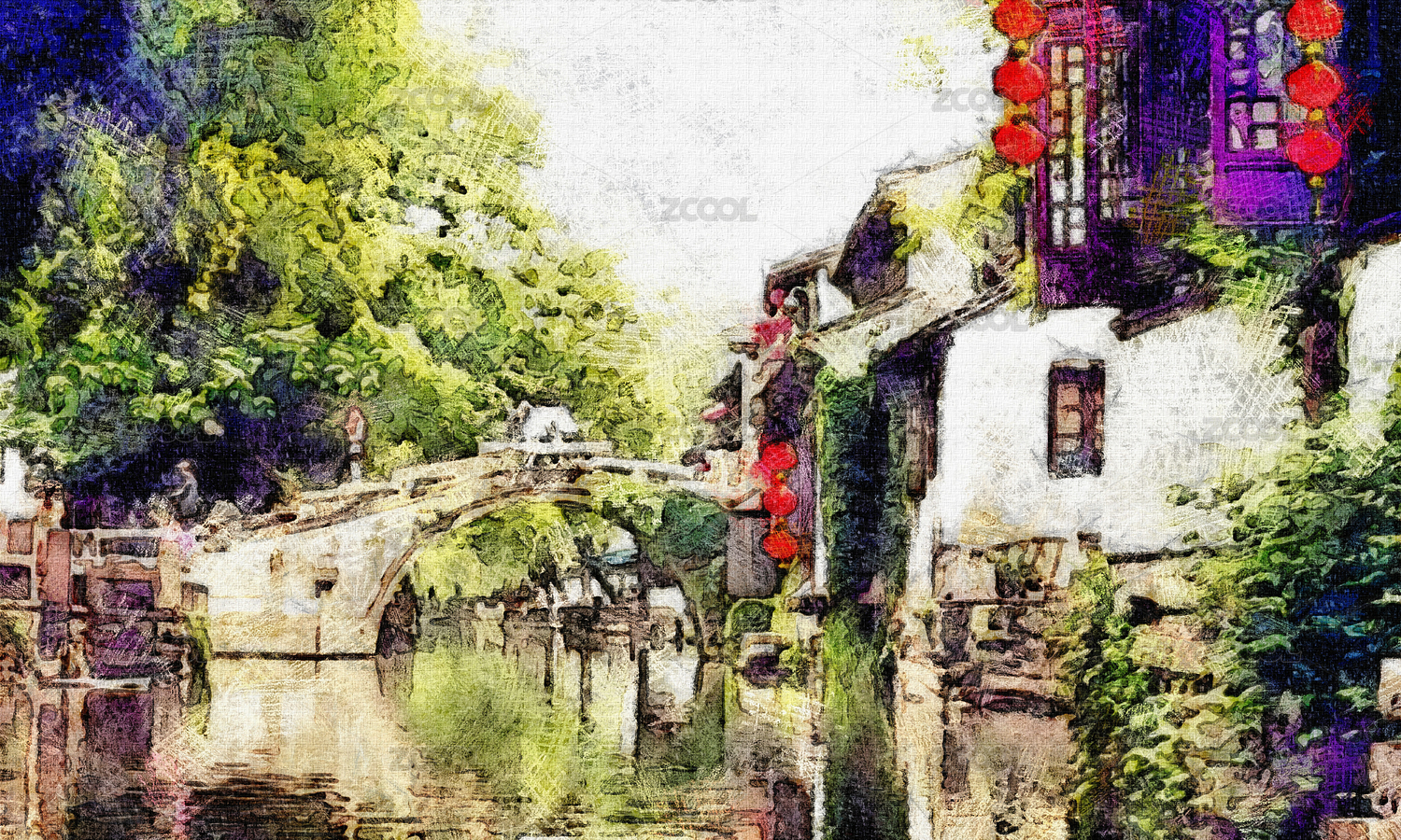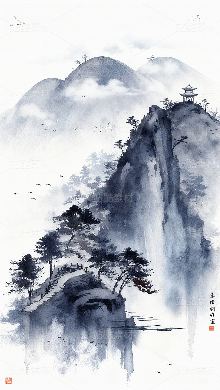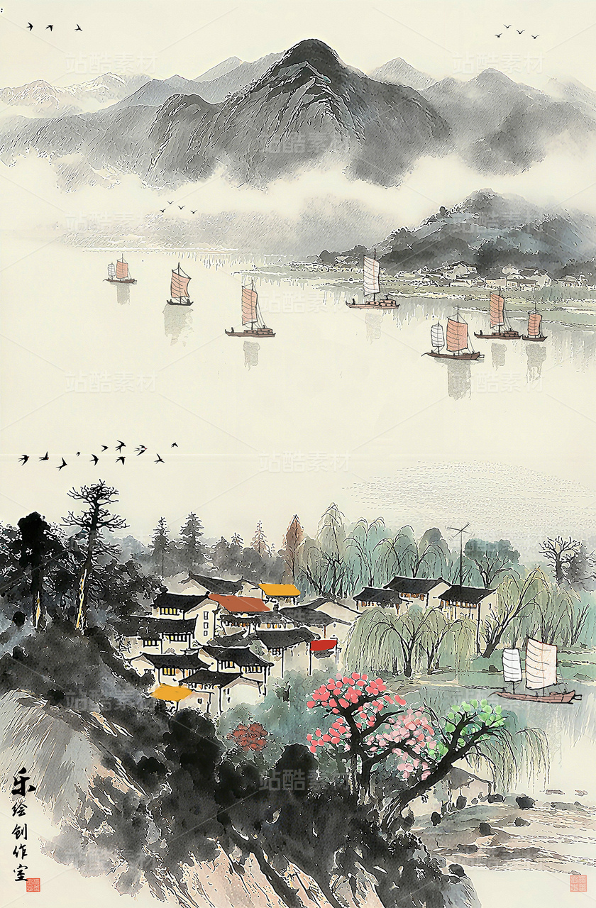 水墨江南风景画意境山水装饰画客厅水墨山水装饰画