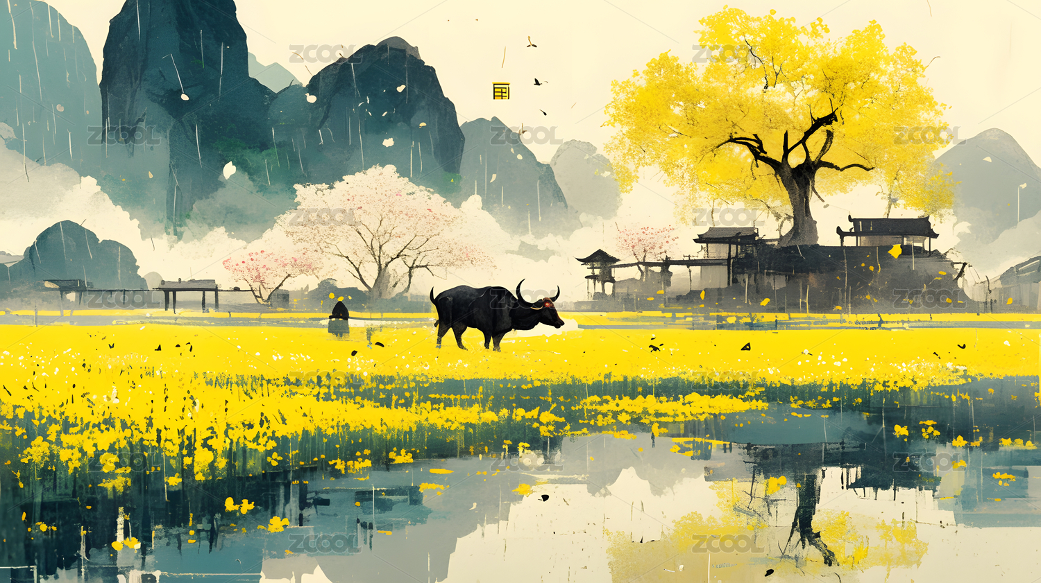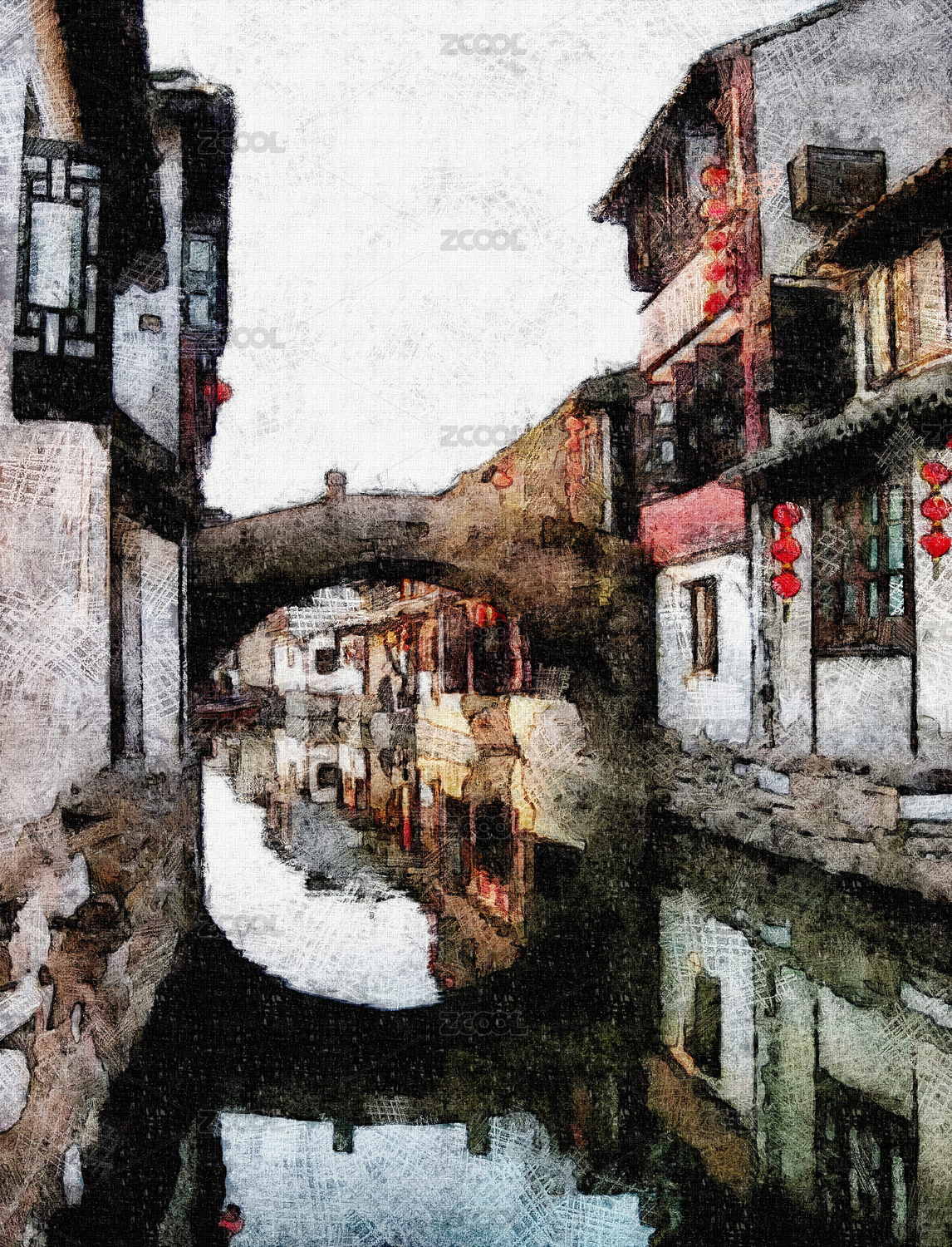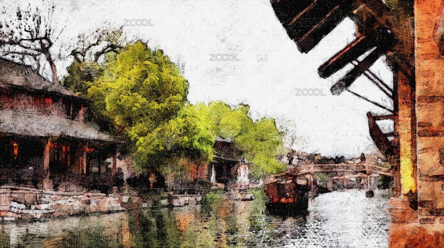 水墨江南风景画意境山水装饰画客厅水墨山水装饰画