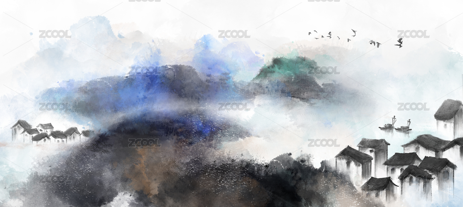 墨山水装饰画水墨江南风景画意境山水装饰画客厅水