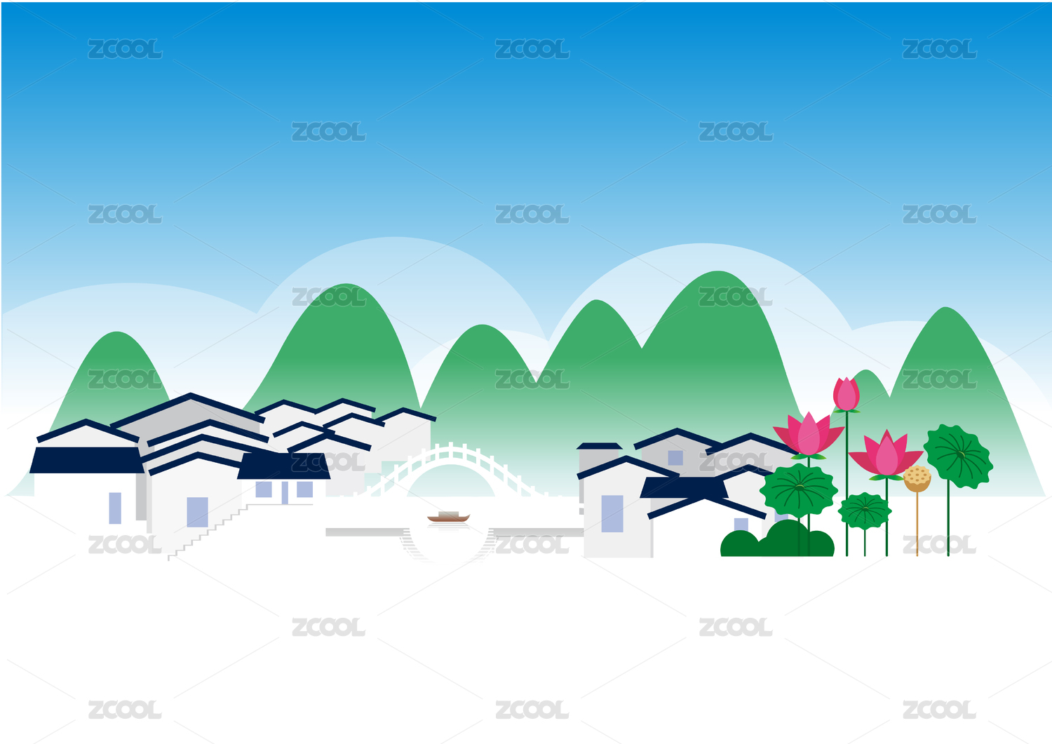 意境山水装饰画客厅水墨山水装饰画水墨江南风景画