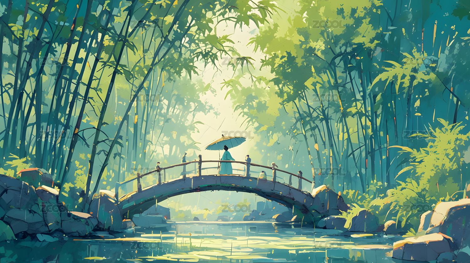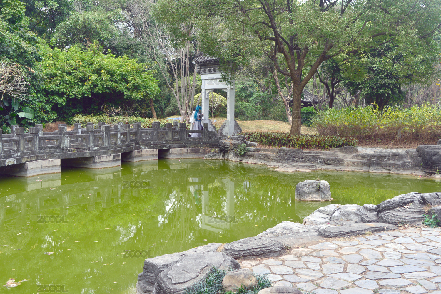 中国广东深圳园博园水墨江南园濠濮间曲桥石牌楼