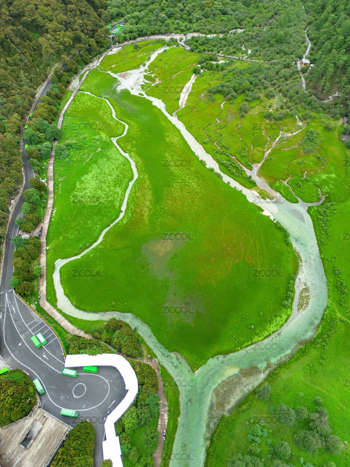 稻城亚丁冲古草甸绿色风景自然风光