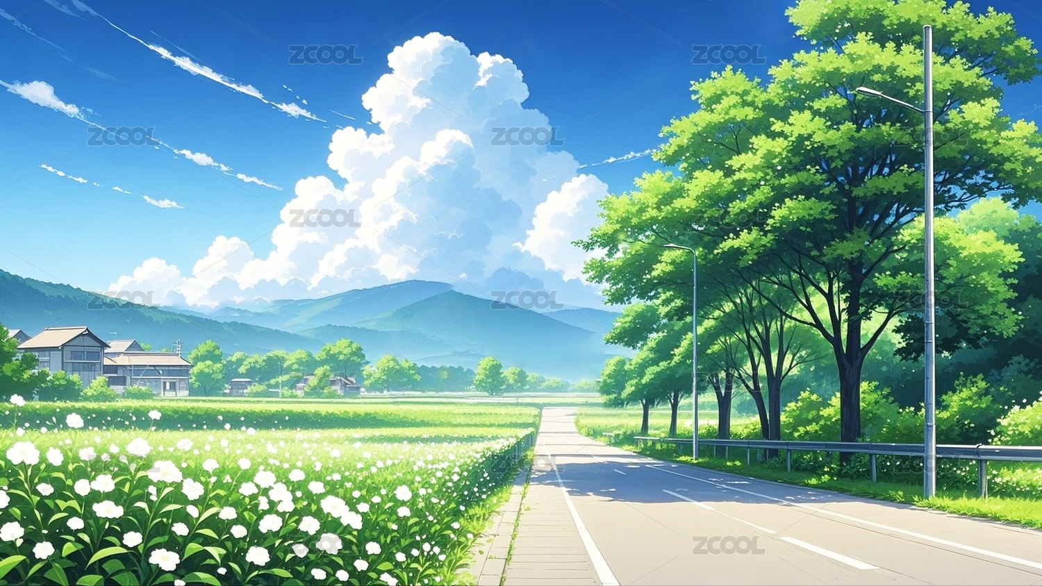 蓝天白云绿色风景