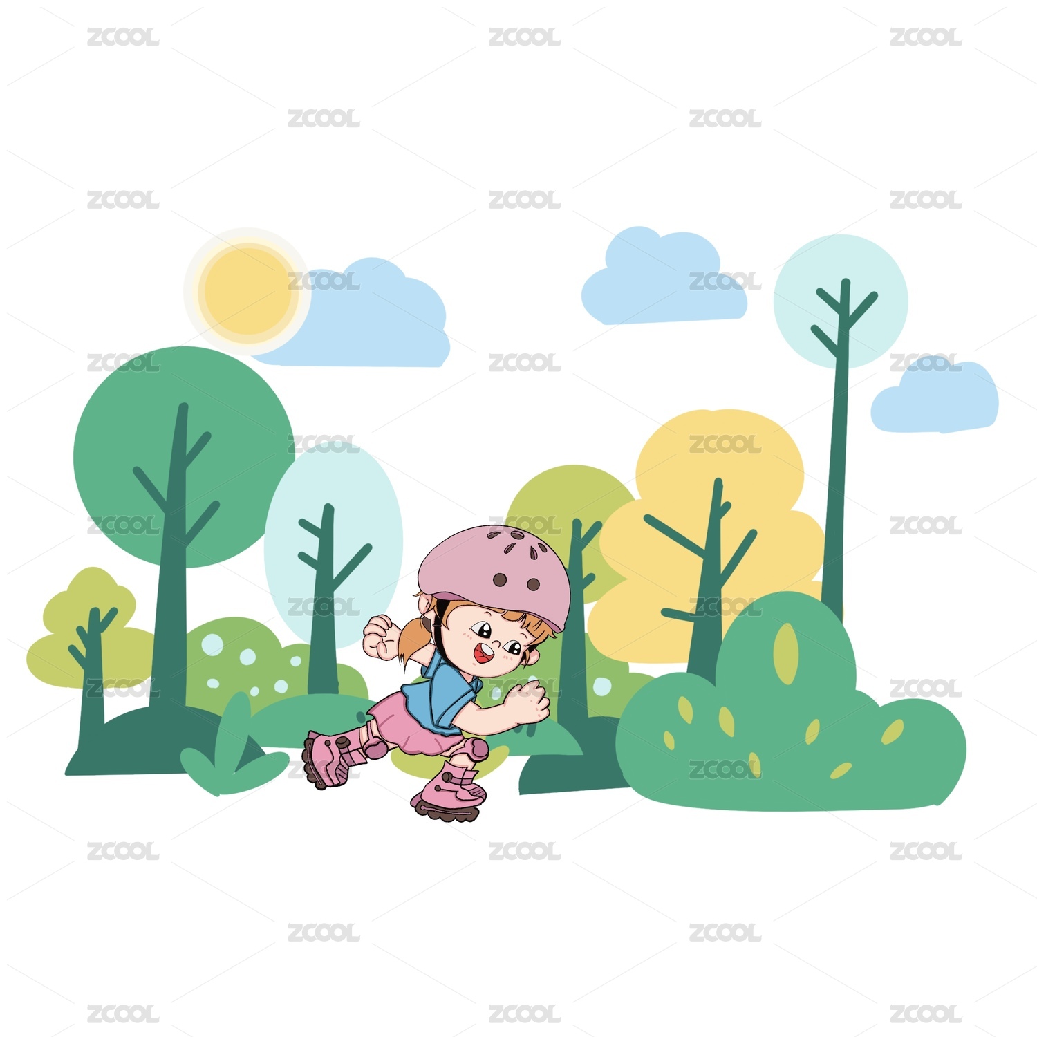 绿色风景和轮滑女孩
