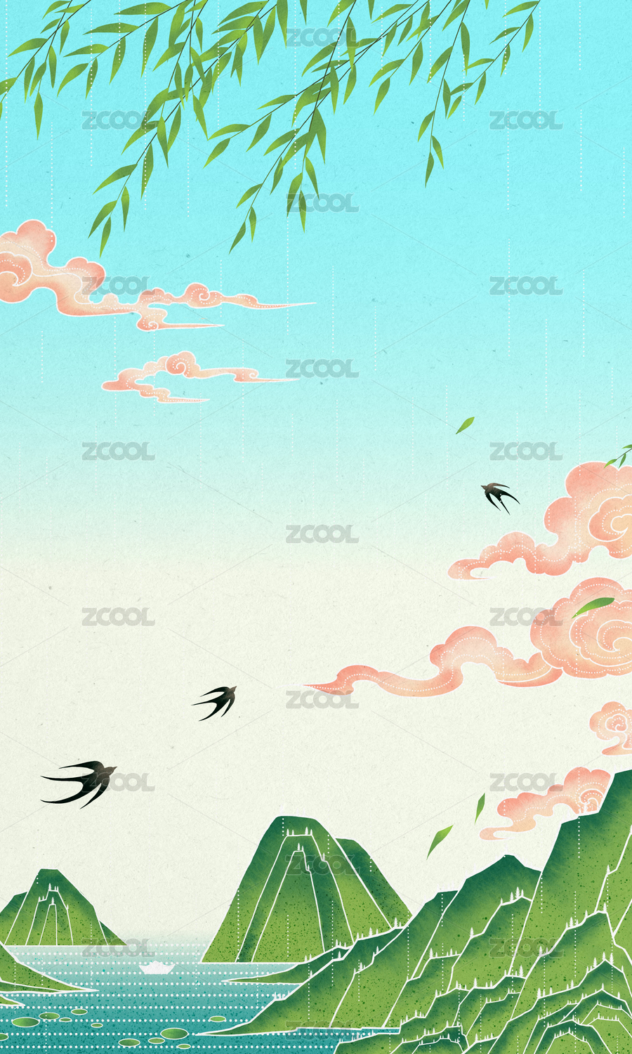 清明节插画清新绿色风景
