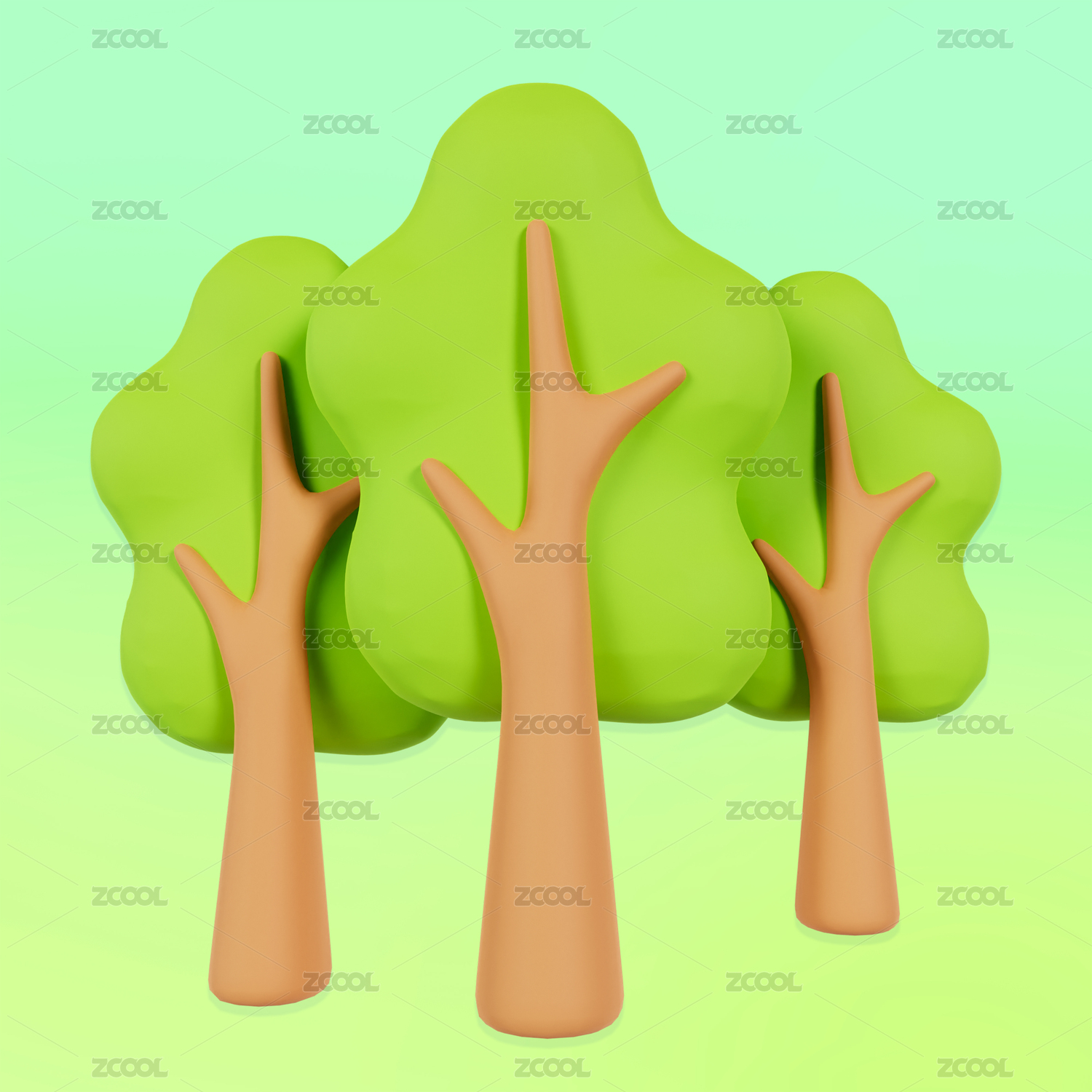 3D渲染的绿色春天树木森林植物元素插画