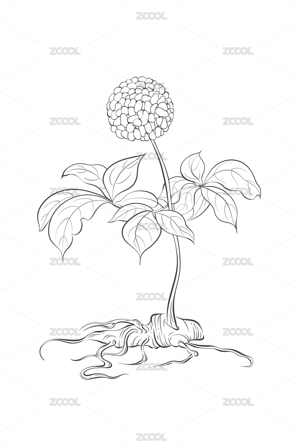 中草药三七田七中医药材植物元素插画