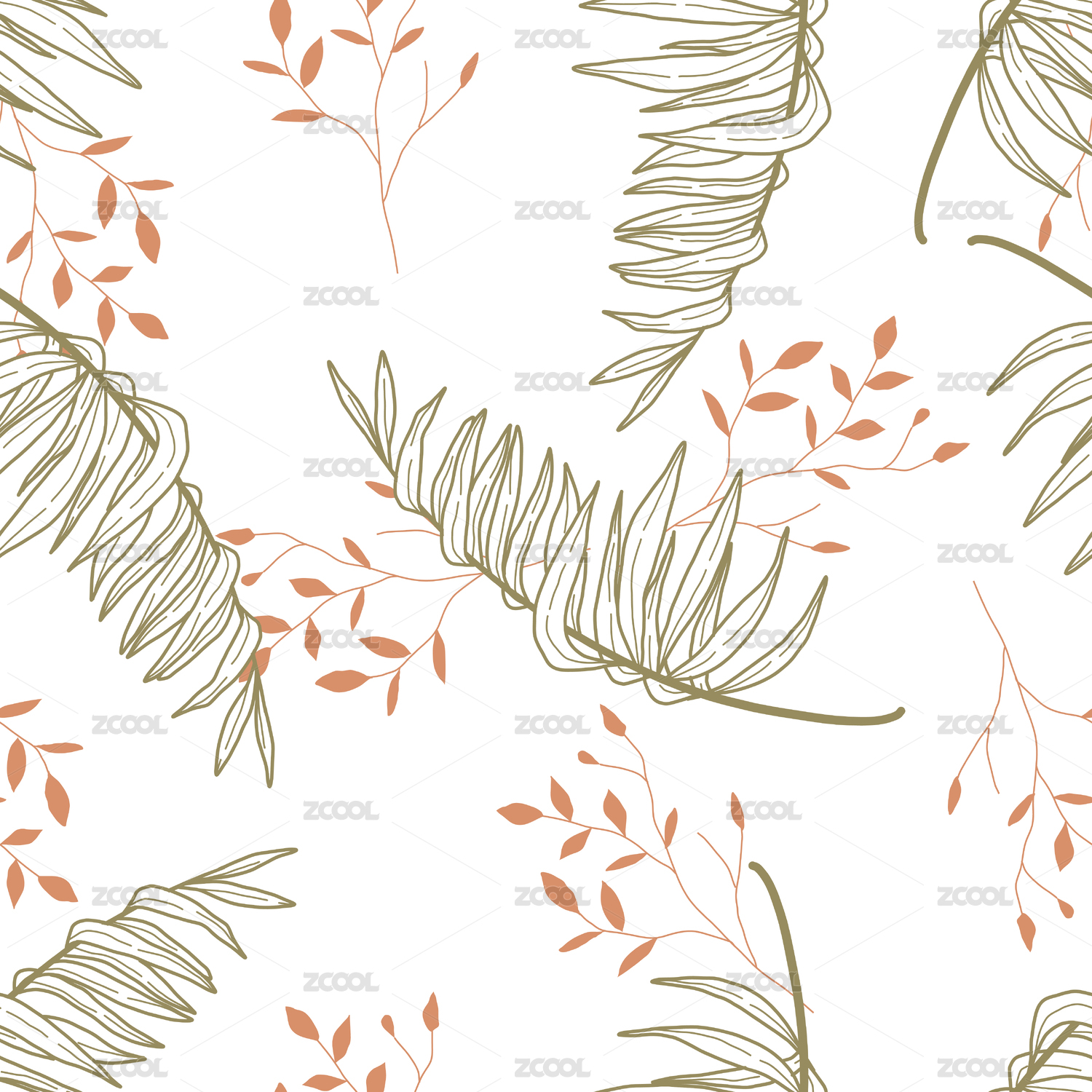 北欧风ins清新树叶无缝印花时尚背景
