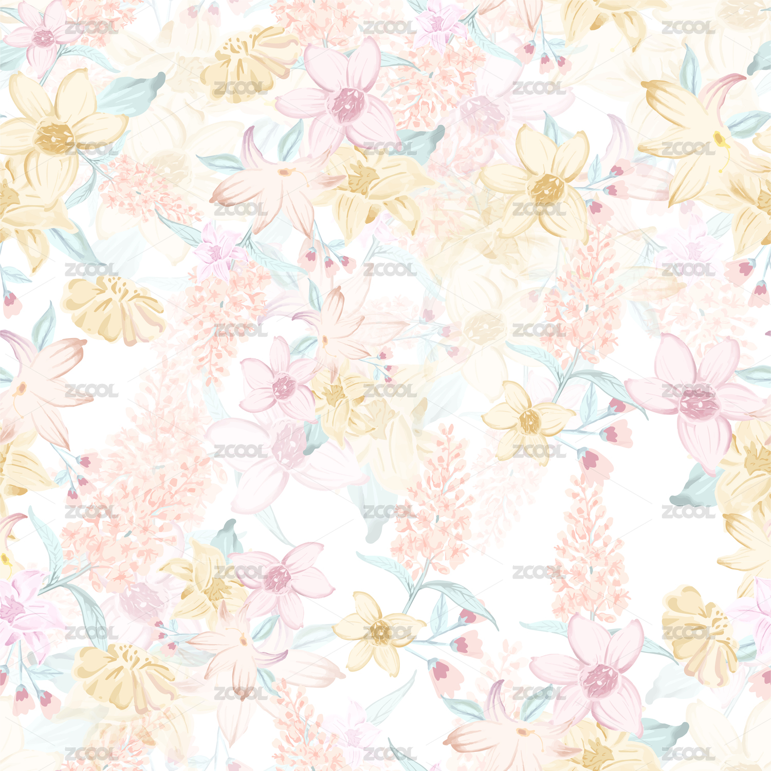组合花卉春夏水彩定位印花