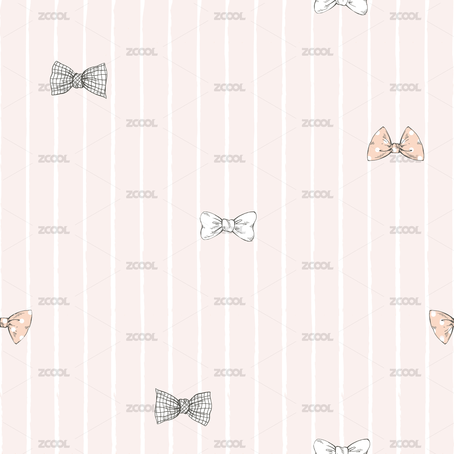 可爱清新ins卡通条纹蝴蝶结印花无缝背景