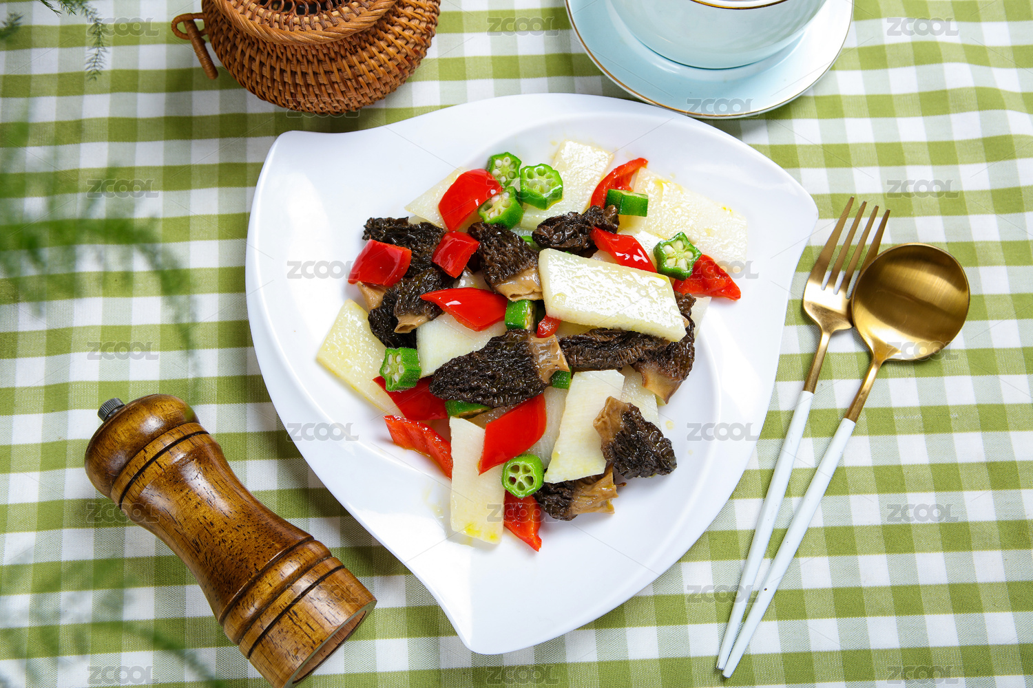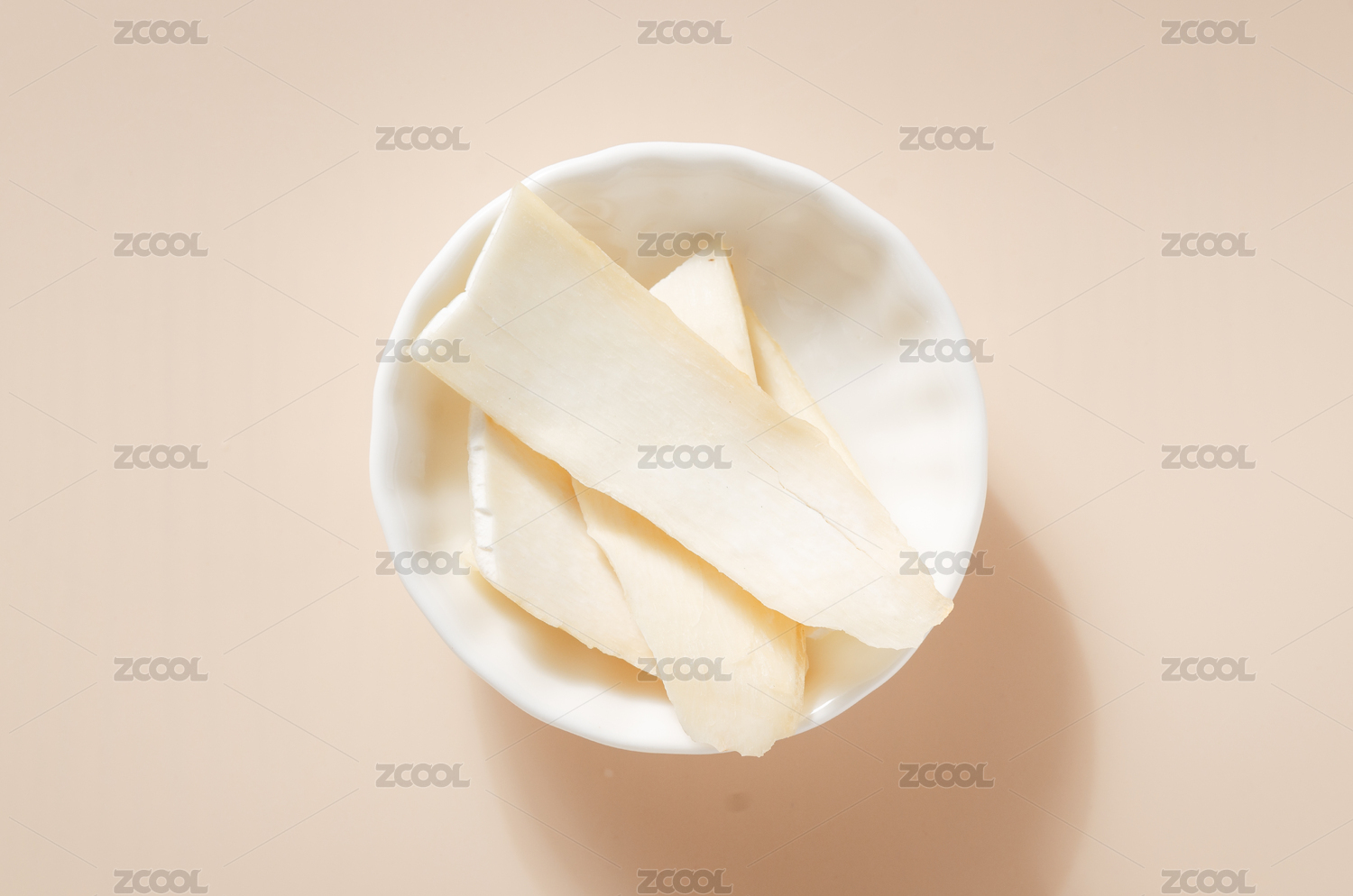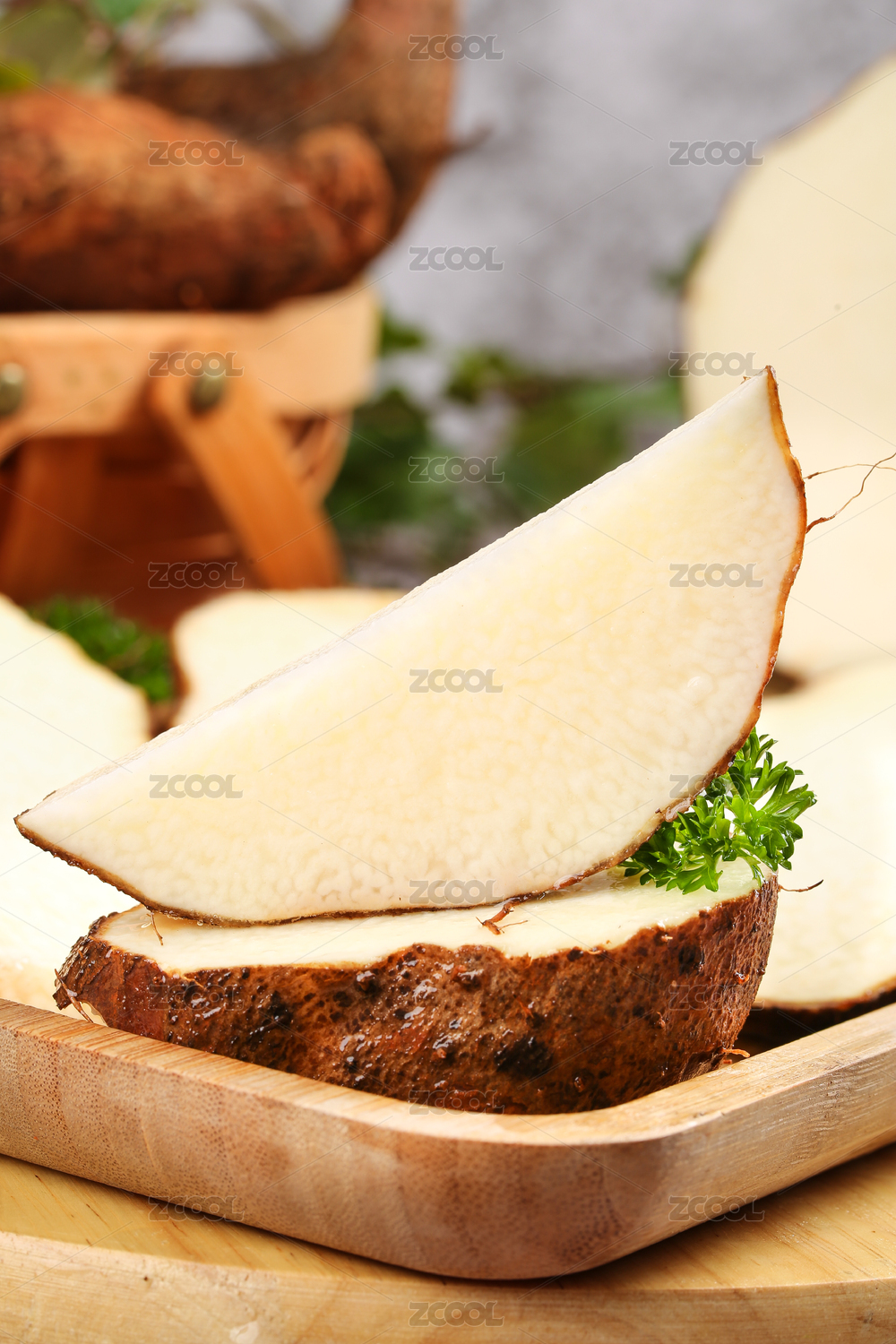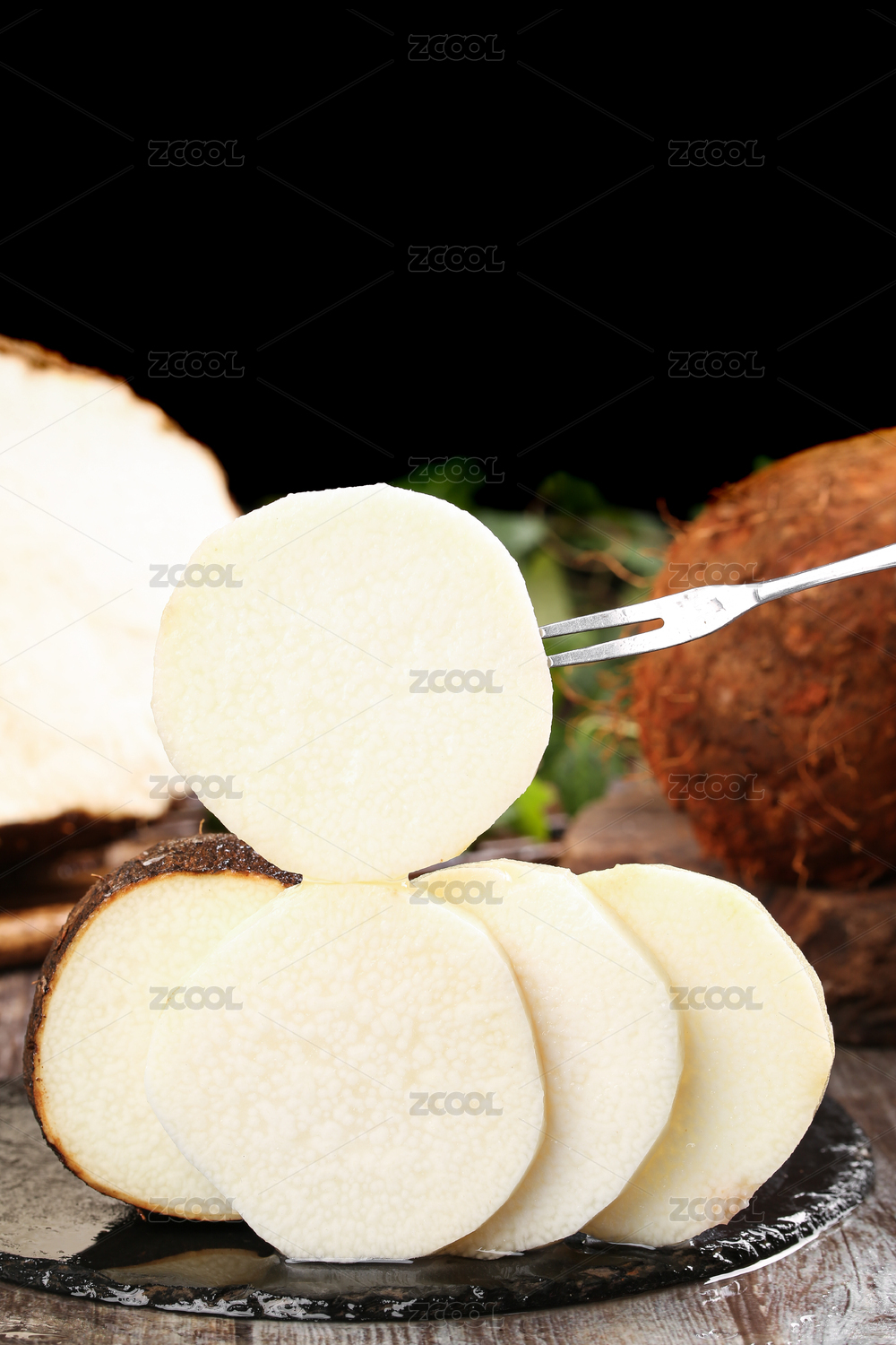 黑底上放着一堆淮山药和叉子上叉着一块山药