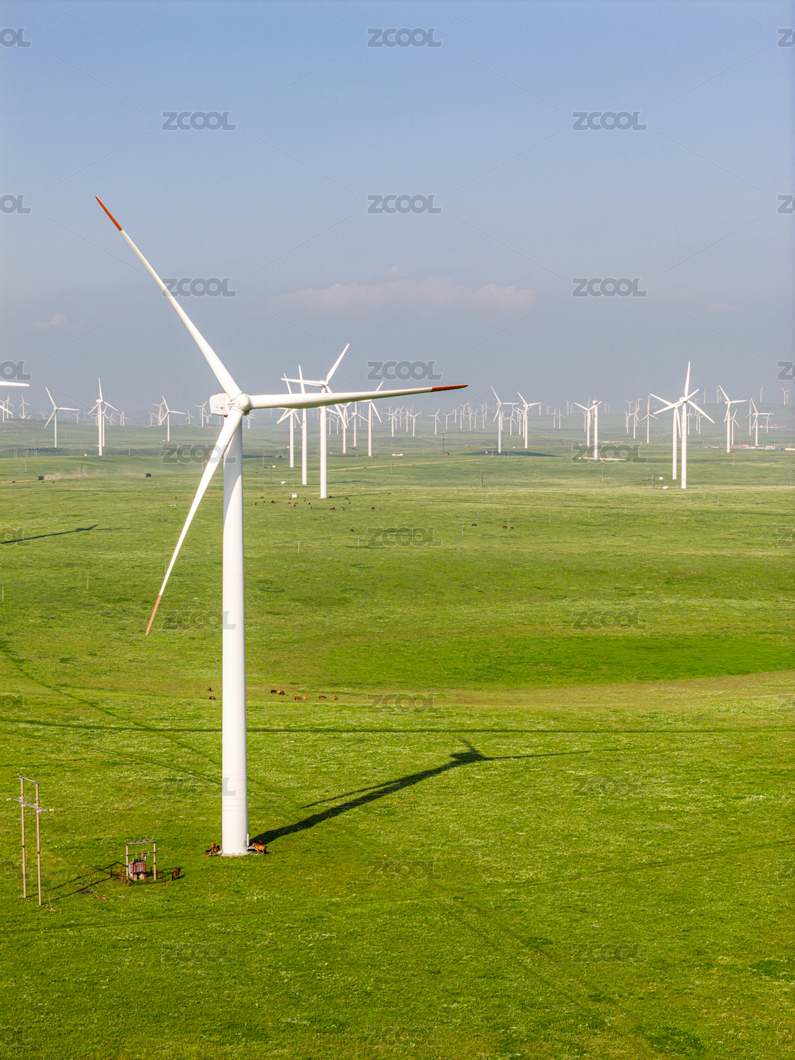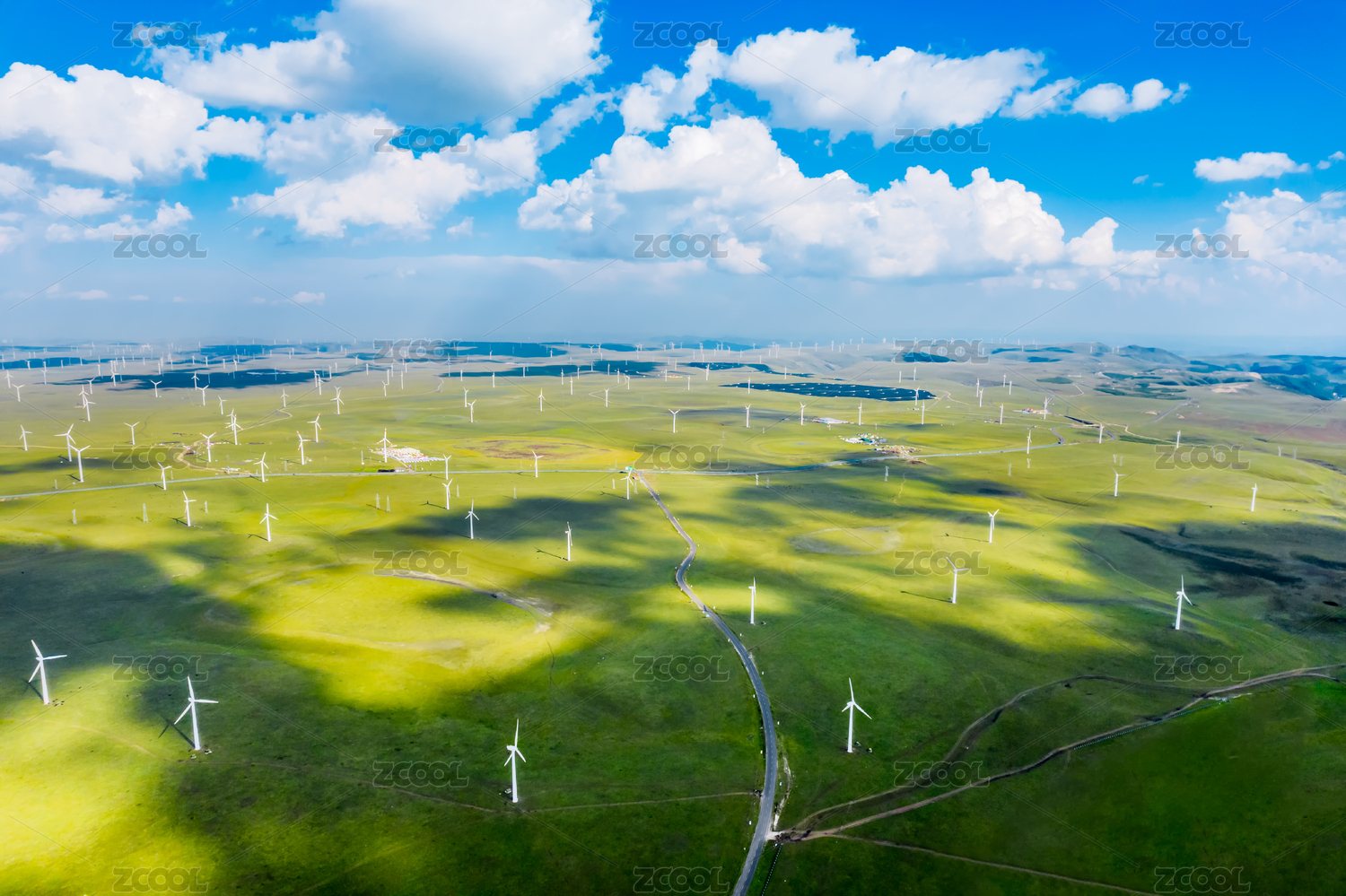 中国内蒙古辉腾锡勒草原上的风电场风车航拍