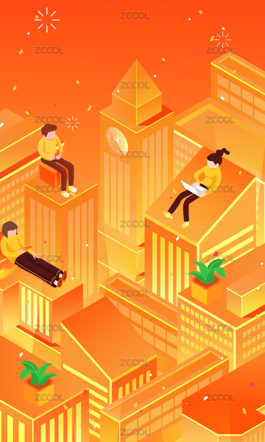 2.5D智能城市物联网金融概念矢量背景插画