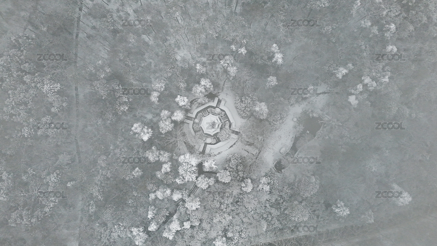 雪天南京钟山风景区光华亭航拍