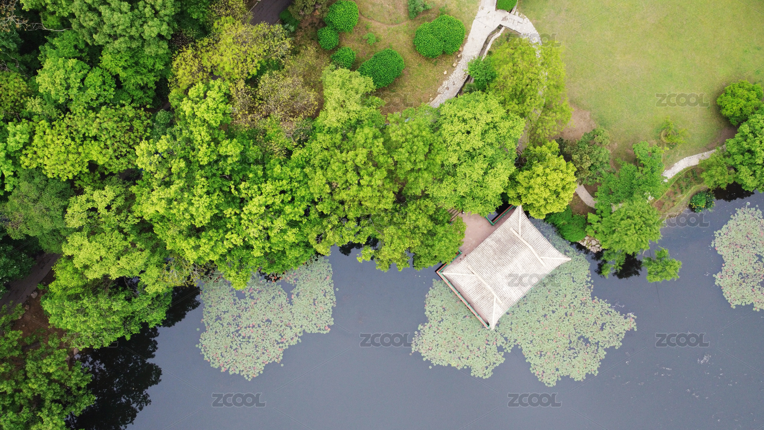 春夏时节 南京钟山风景区流徽榭航拍