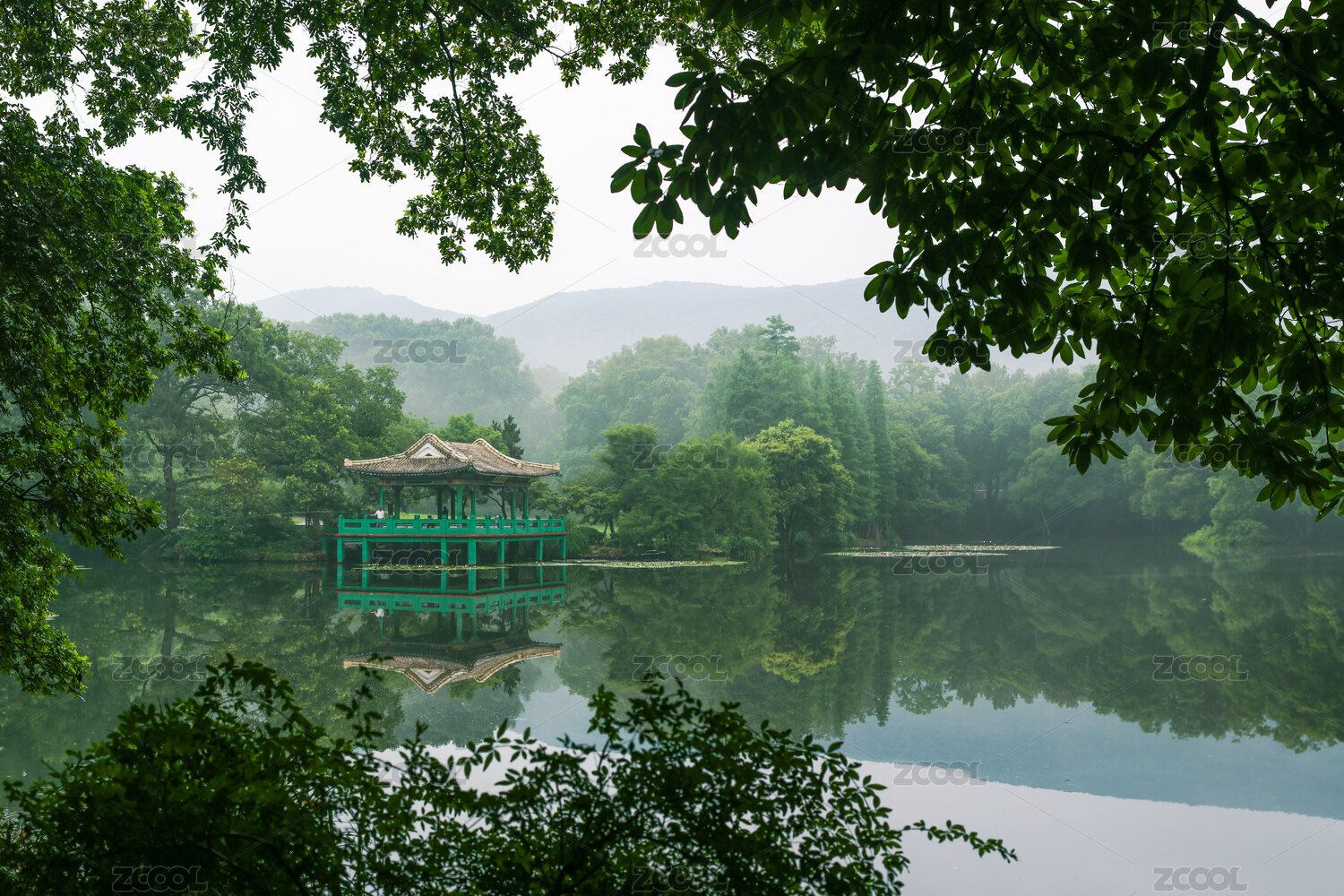 春夏南京钟山风景区 雨后雾中流徽榭