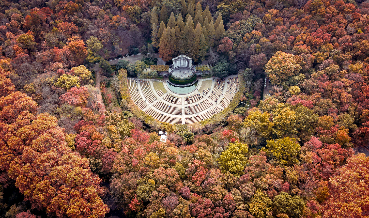 江苏南京钟山风景区音乐台航拍