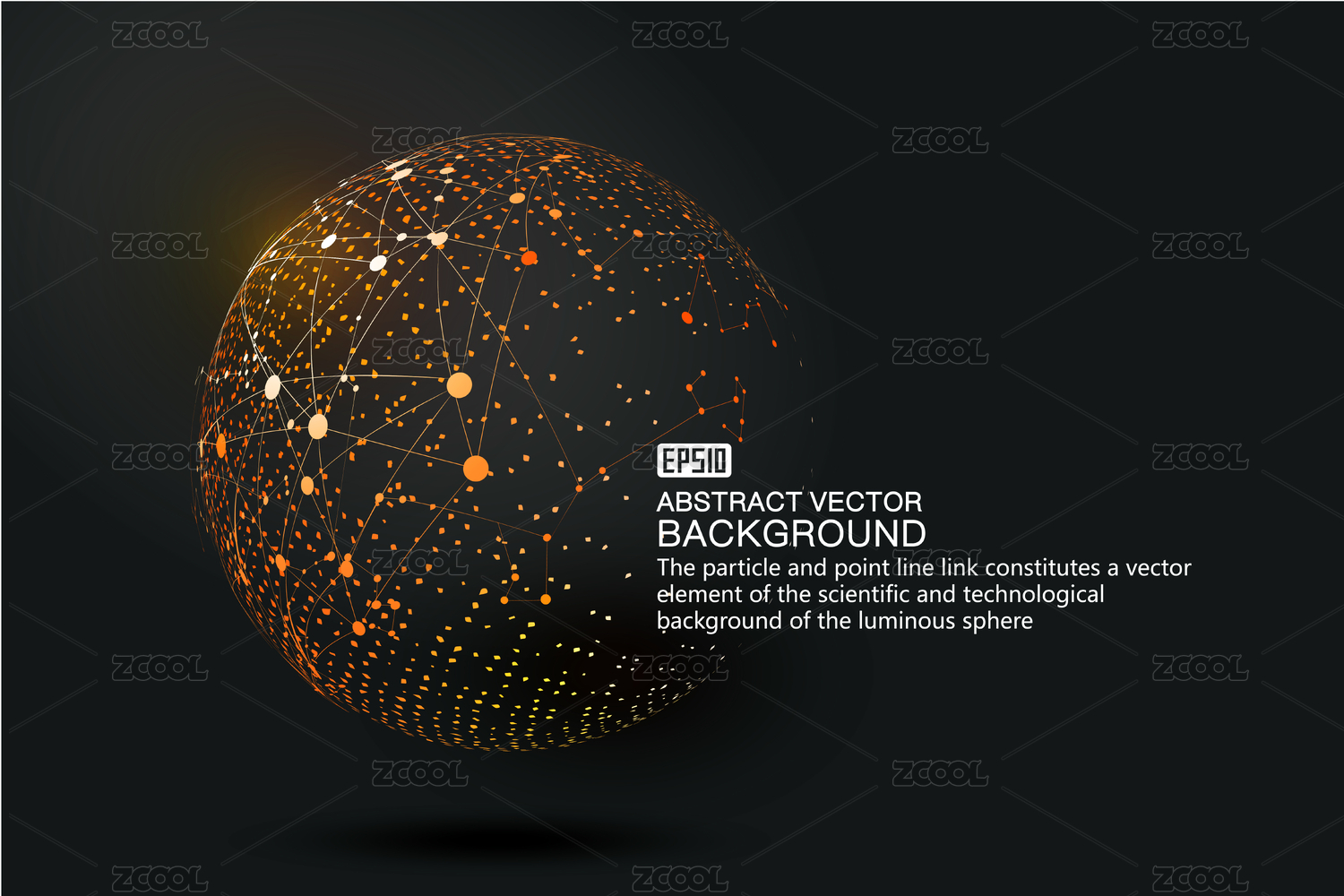 粒子、点线链接组成发光球体科技背景,科技效果的矢量元素