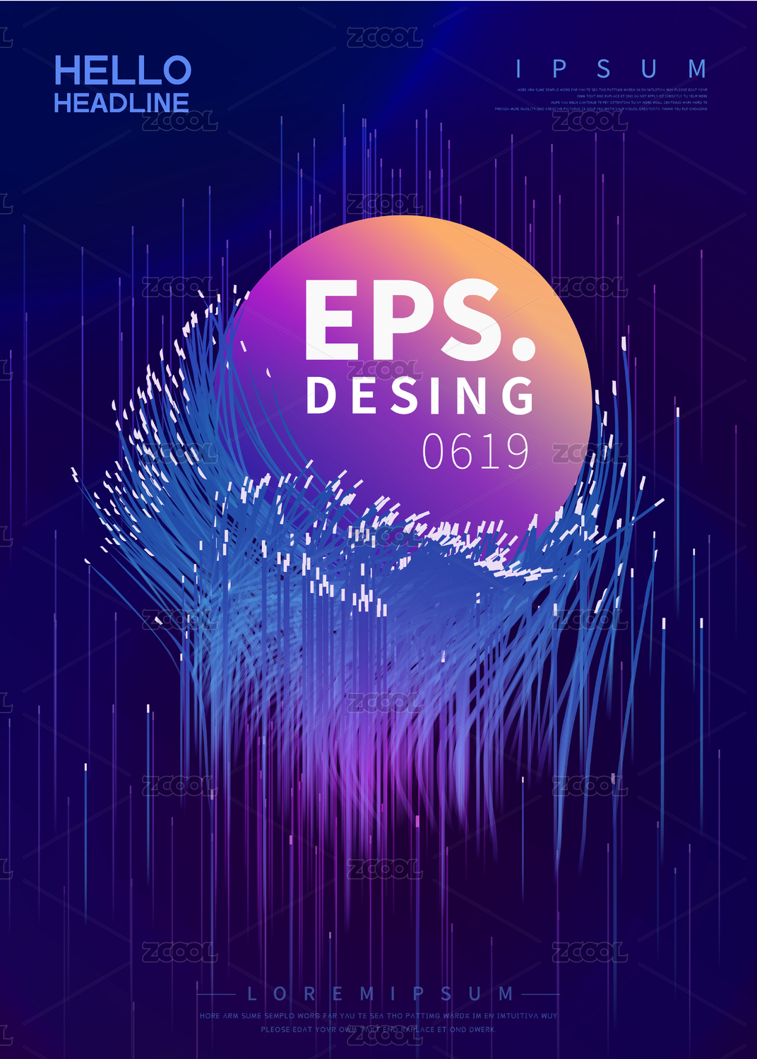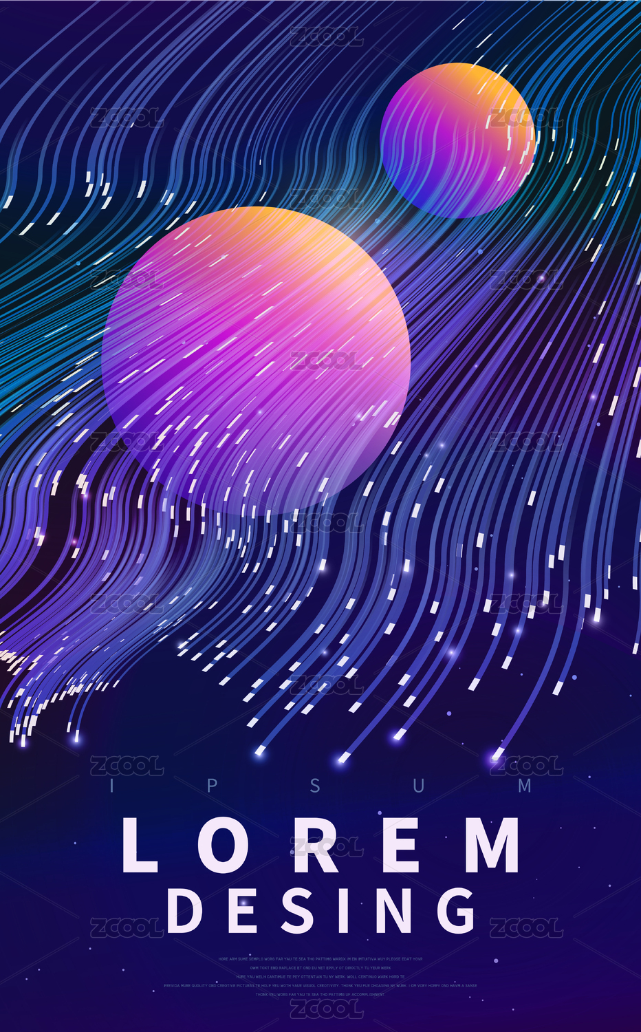 蓝紫色抽象粒子线条光球组合商业矢量海报