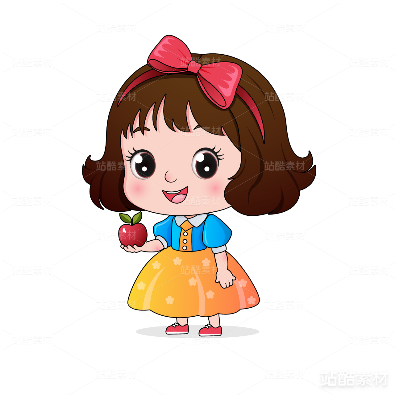 矢量人物插画小女孩可爱公主苹果