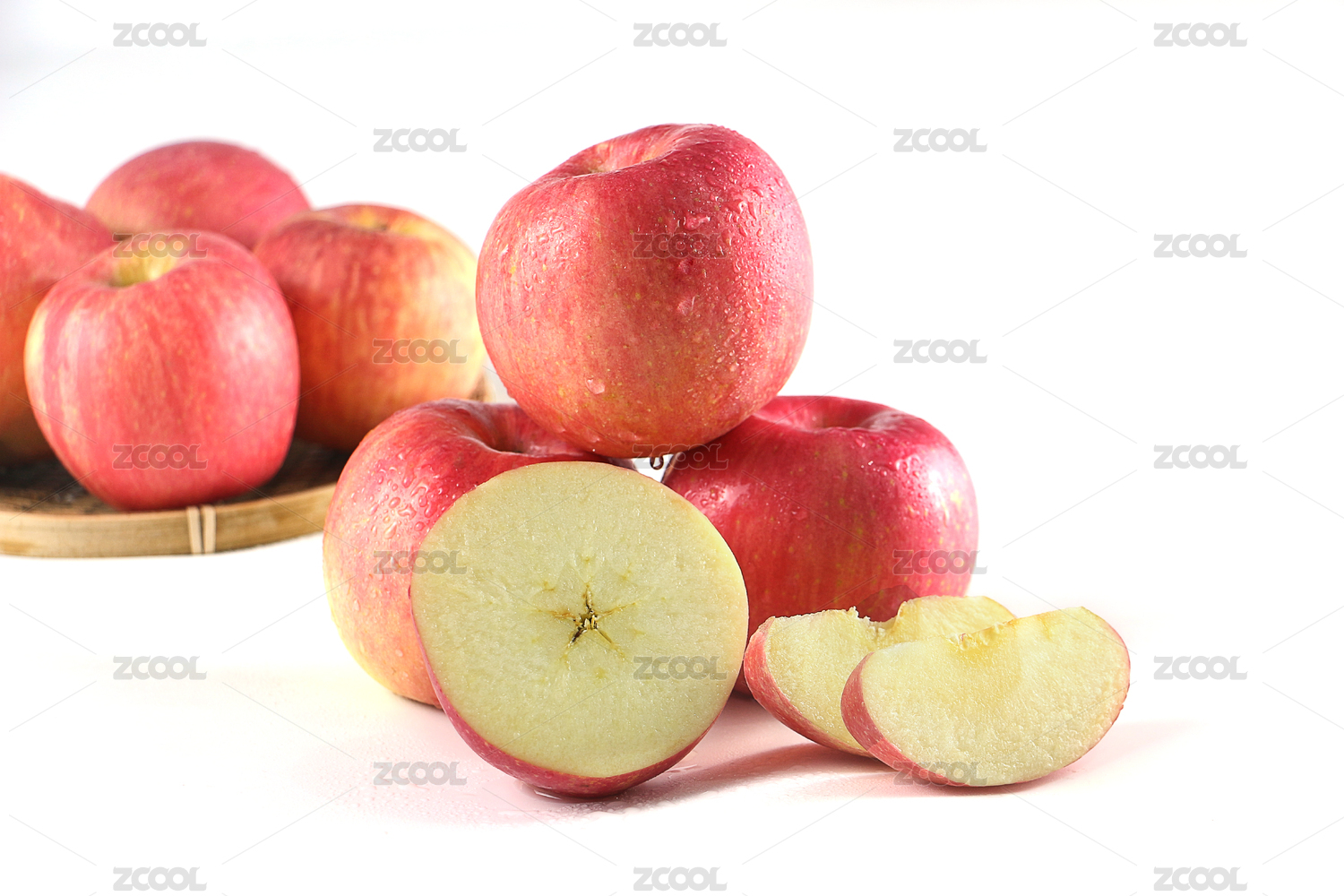 白底上放这切开的苹果