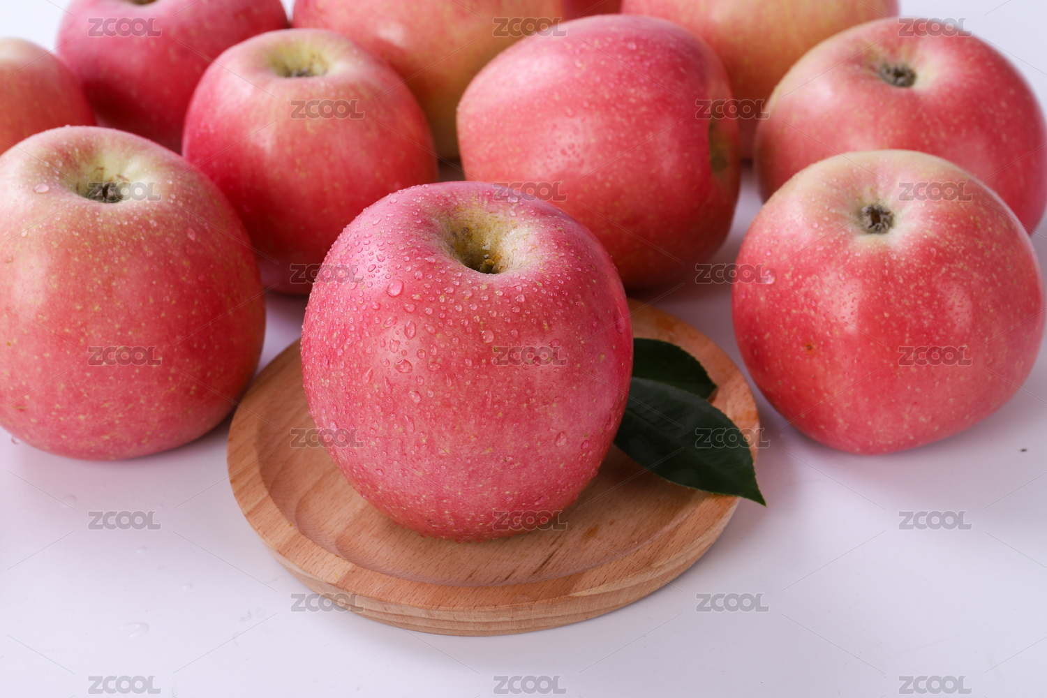 白氏上放着两个完整的陕西苹果和切块的苹果