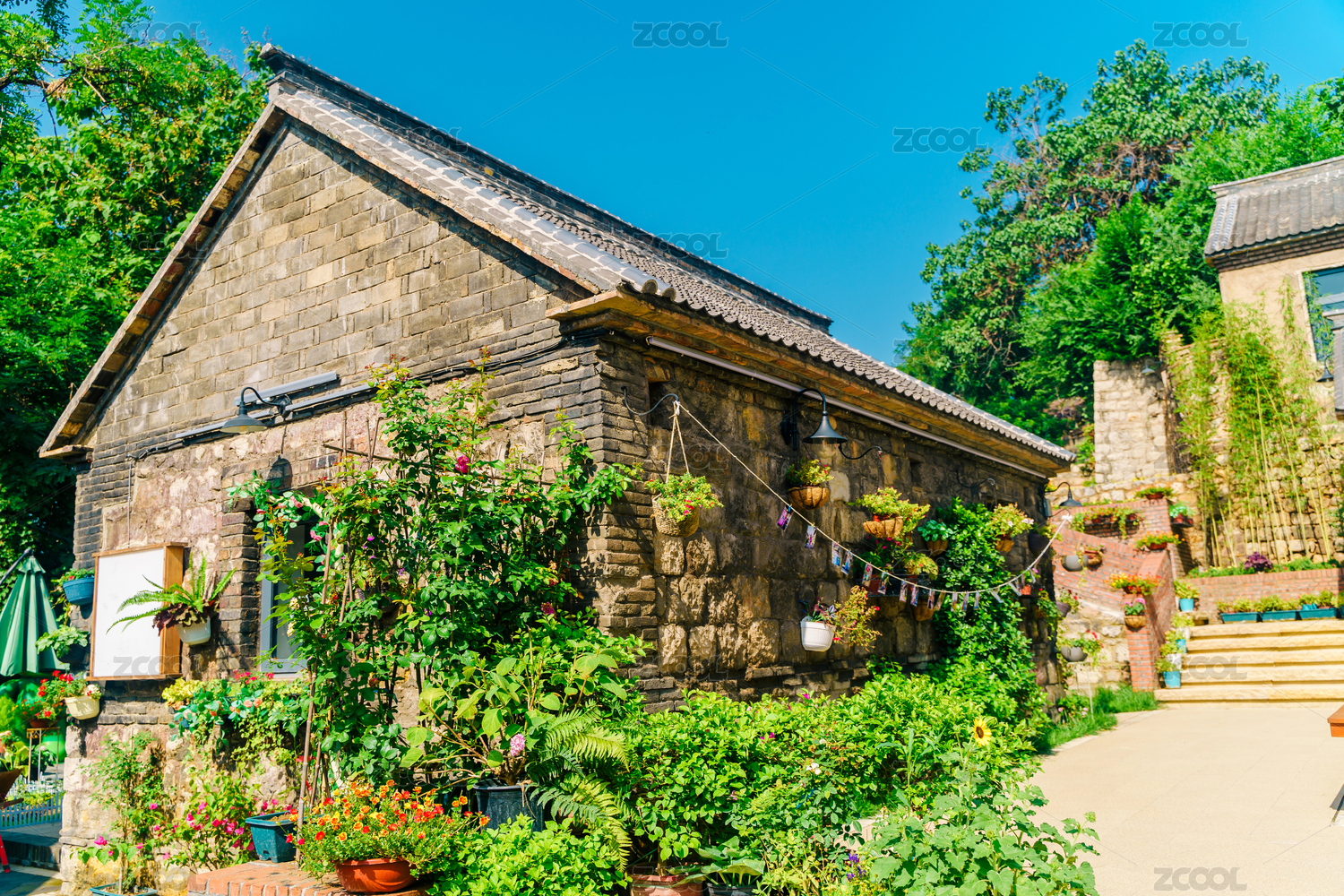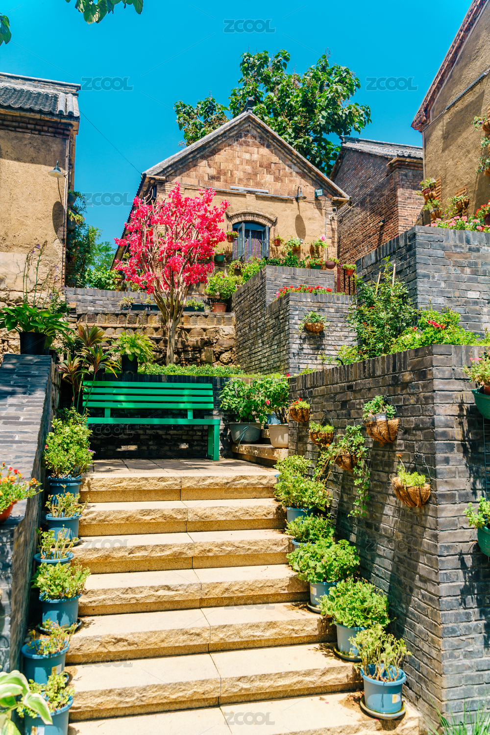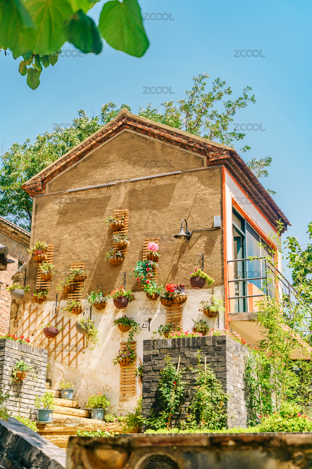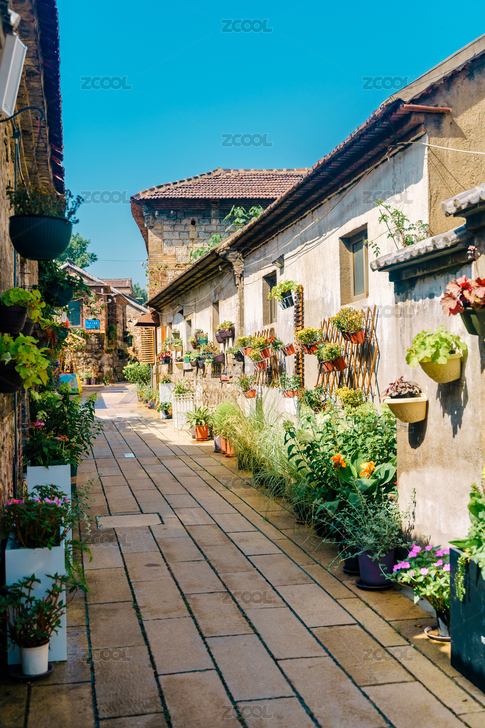 颜神古镇开满花的街道与中国北方民居