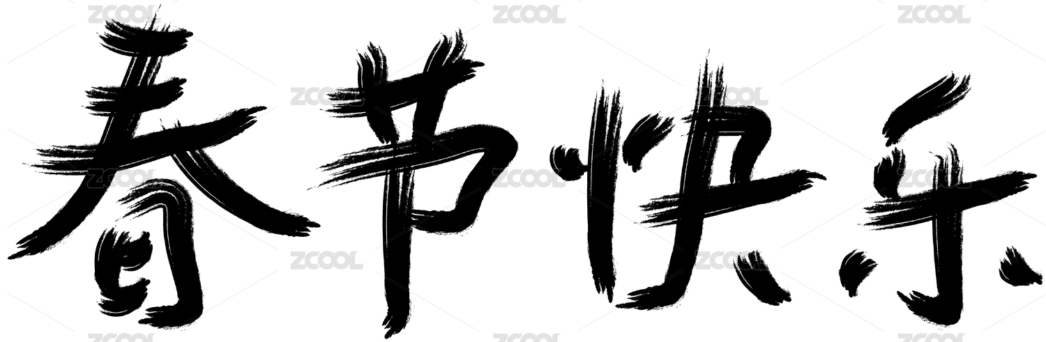 国潮手写体书法毛笔字春节快乐