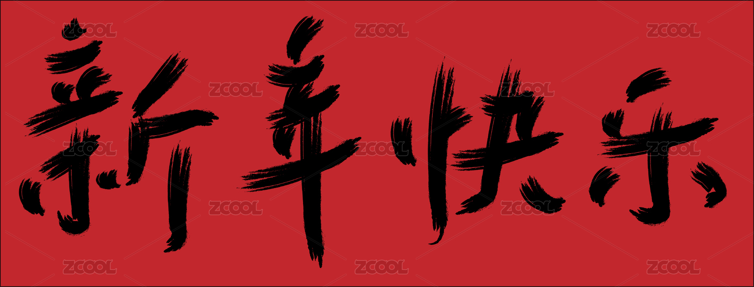 国潮手写体书法毛笔字新年快乐