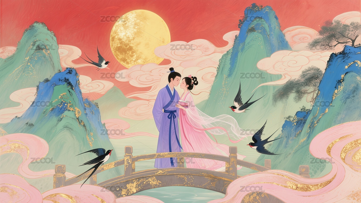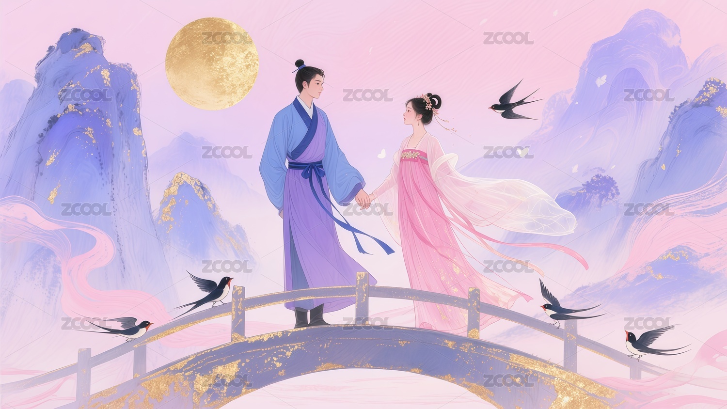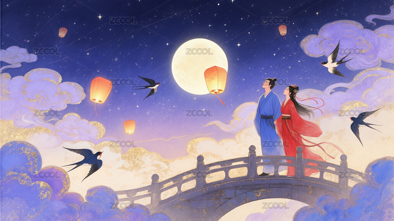 七夕节情人节情侣插画
