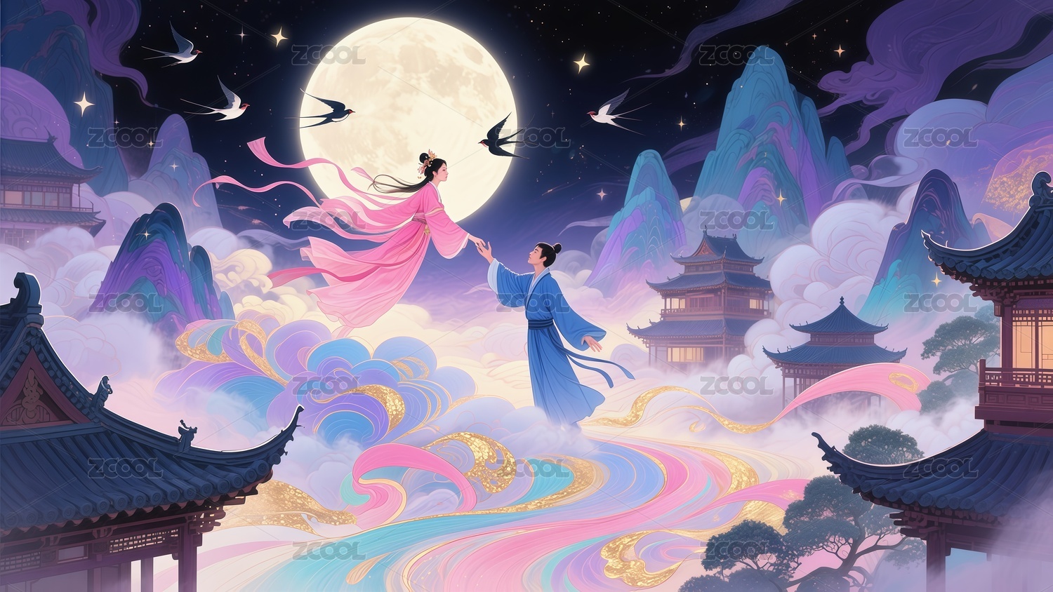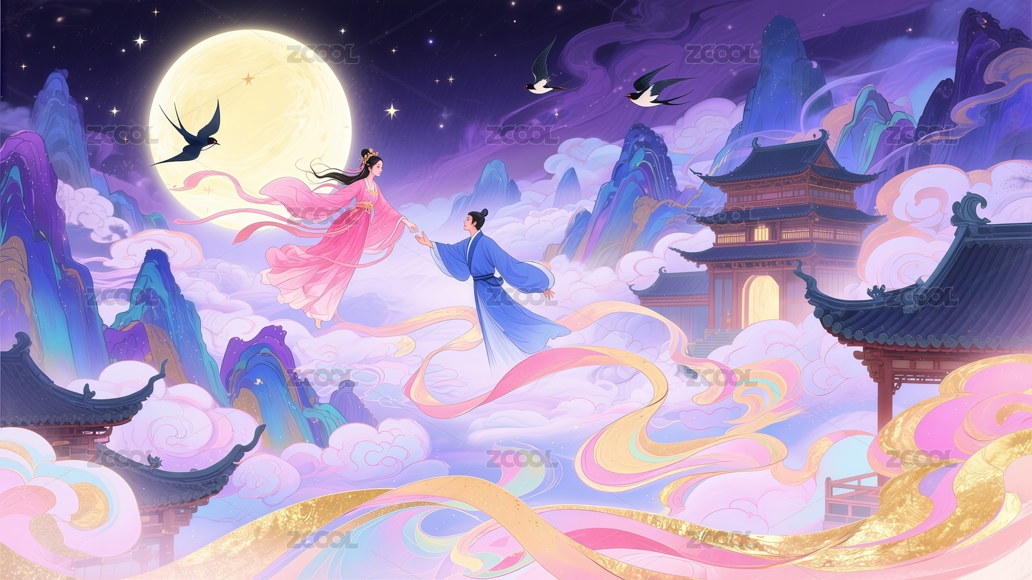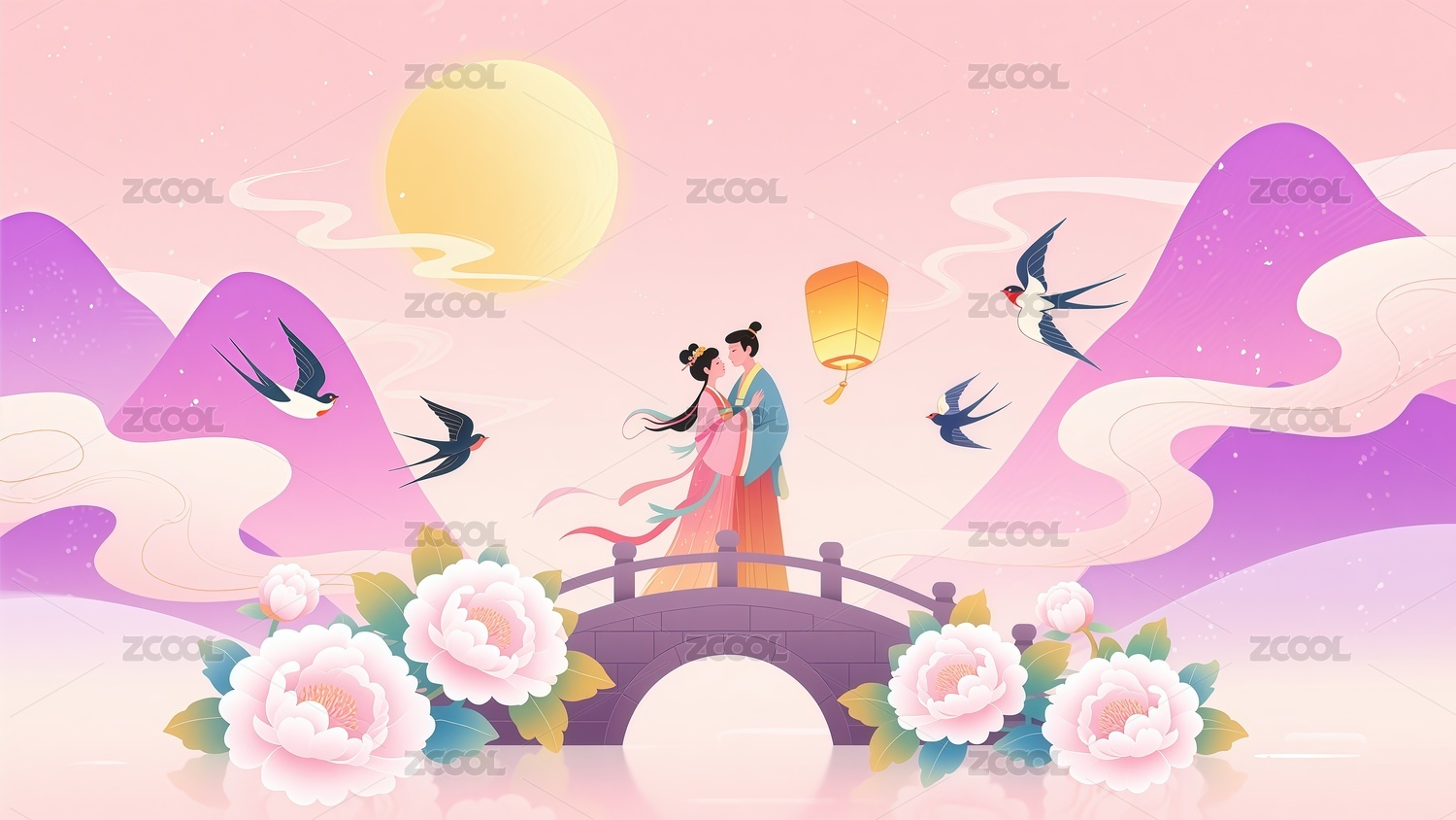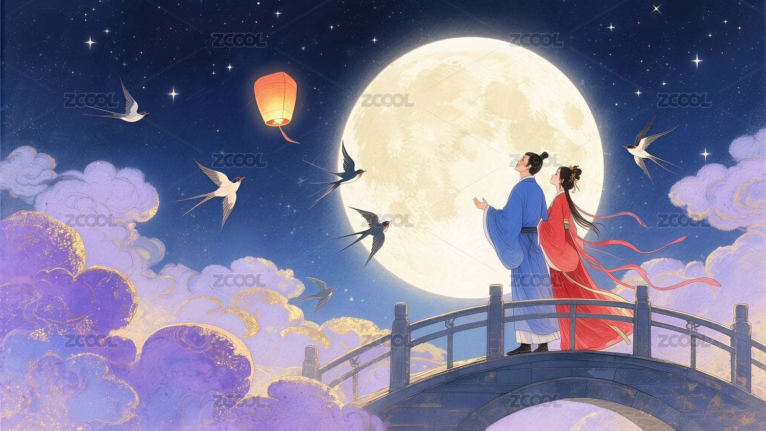 七夕节情人节情侣插画