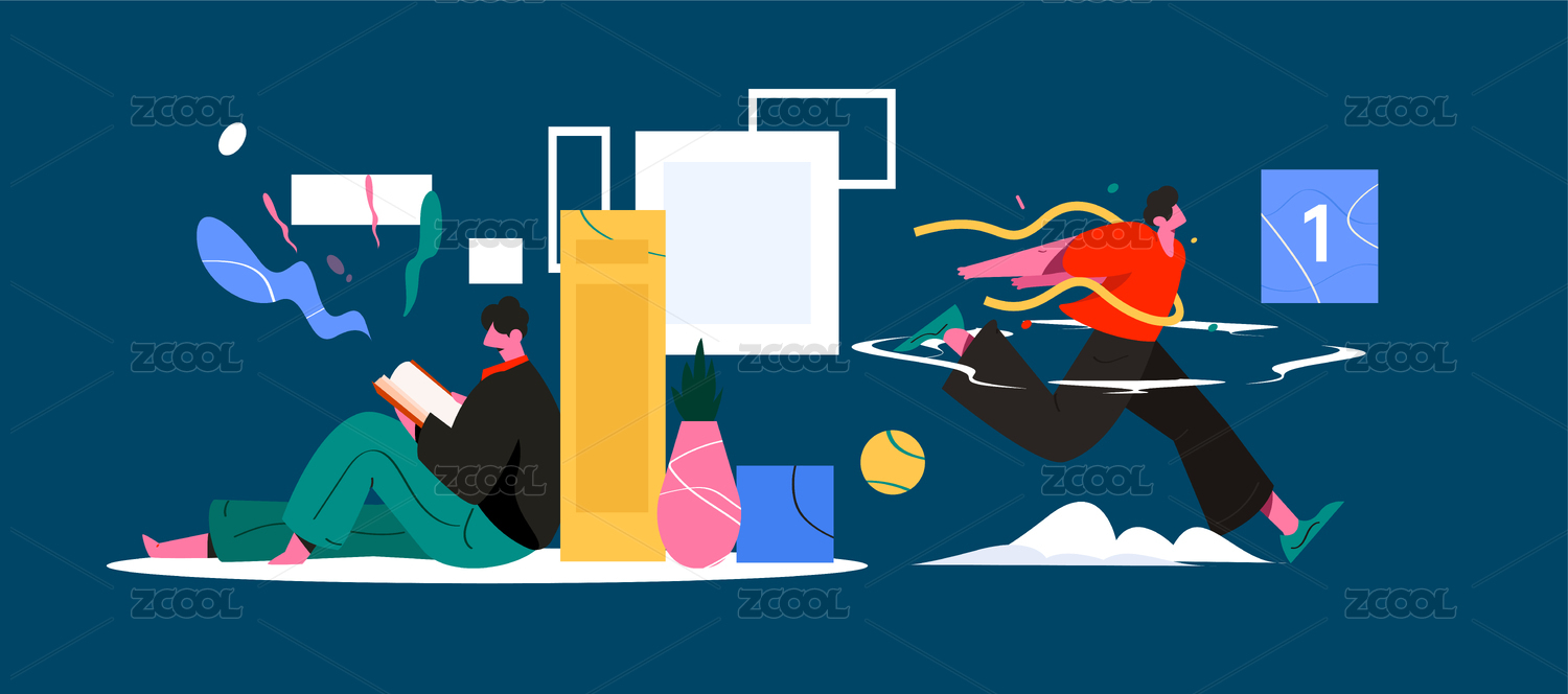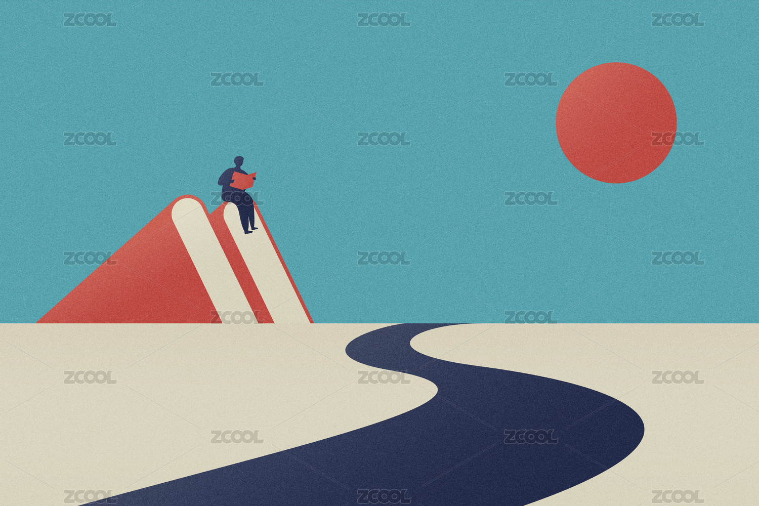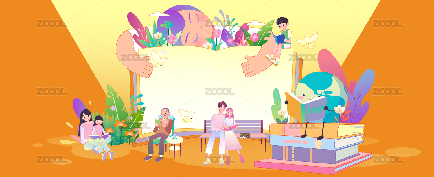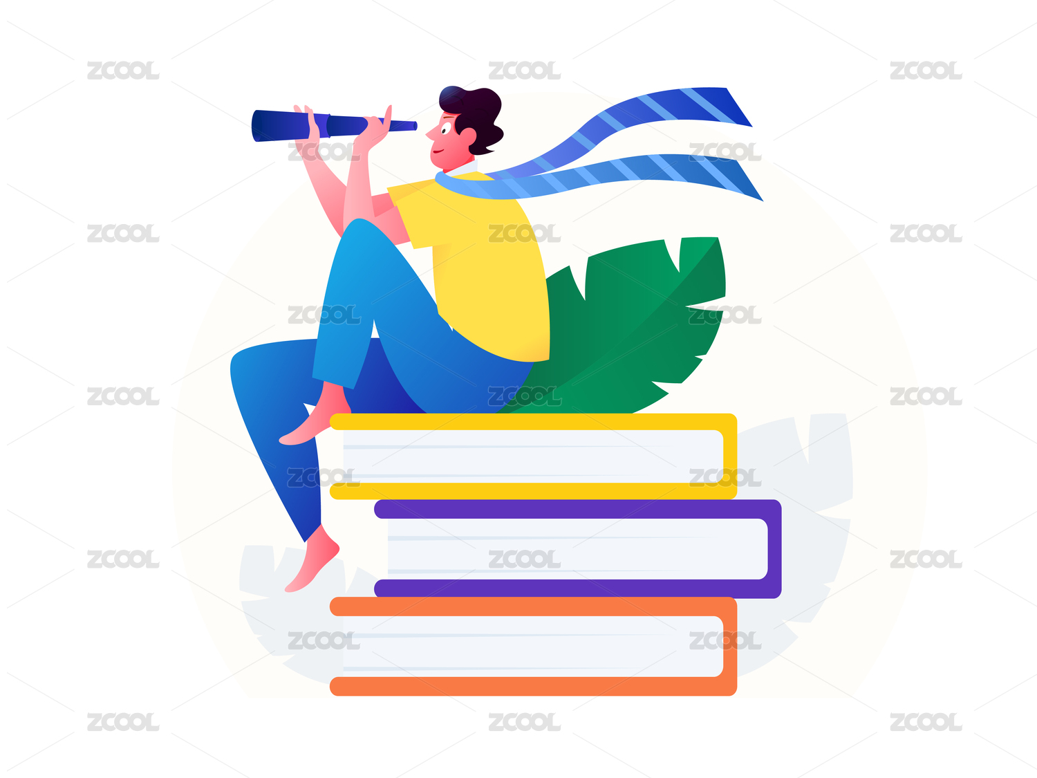 阅读让我们获得更多的知识与想法,矢量扁平概念插画
