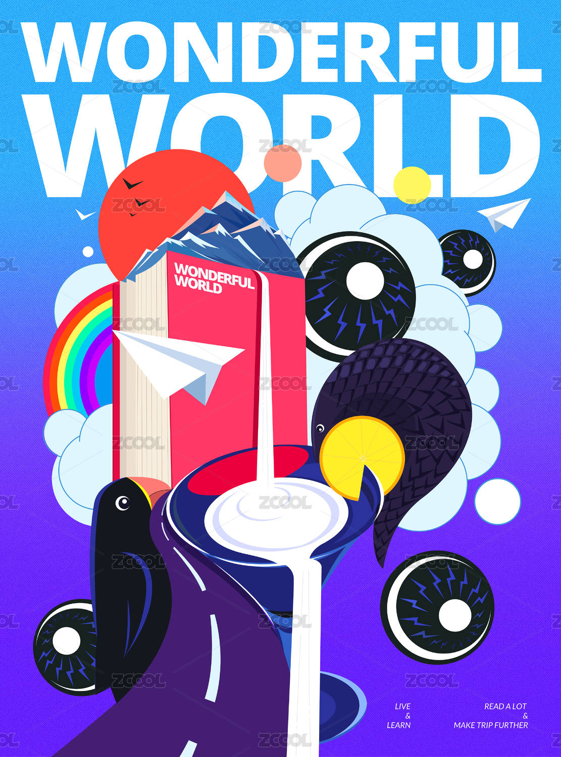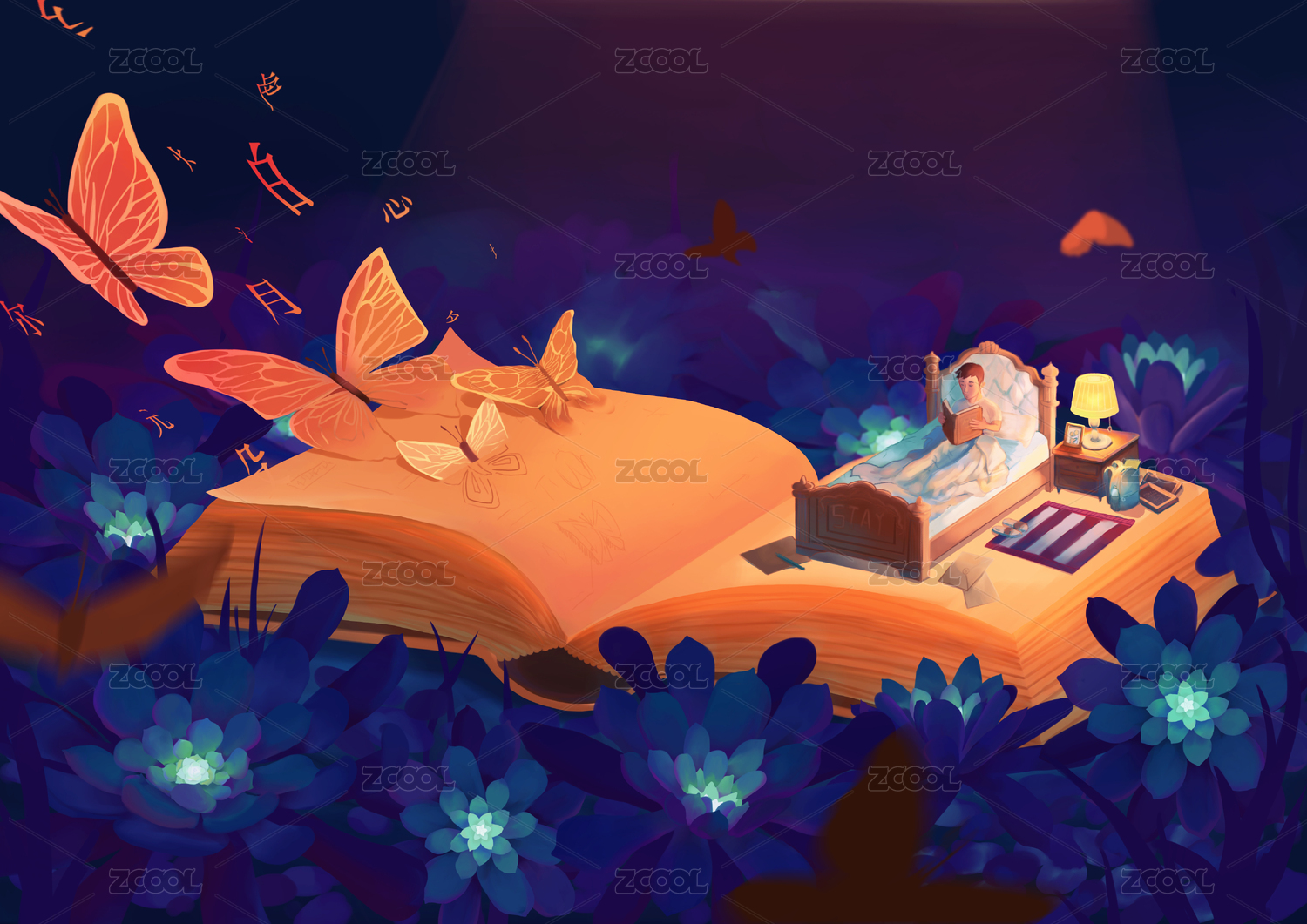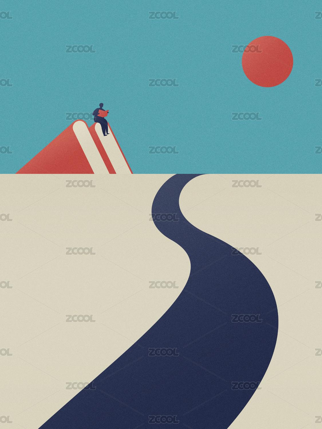 阅读让我们获得更多的知识与想法,矢量扁平概念插画