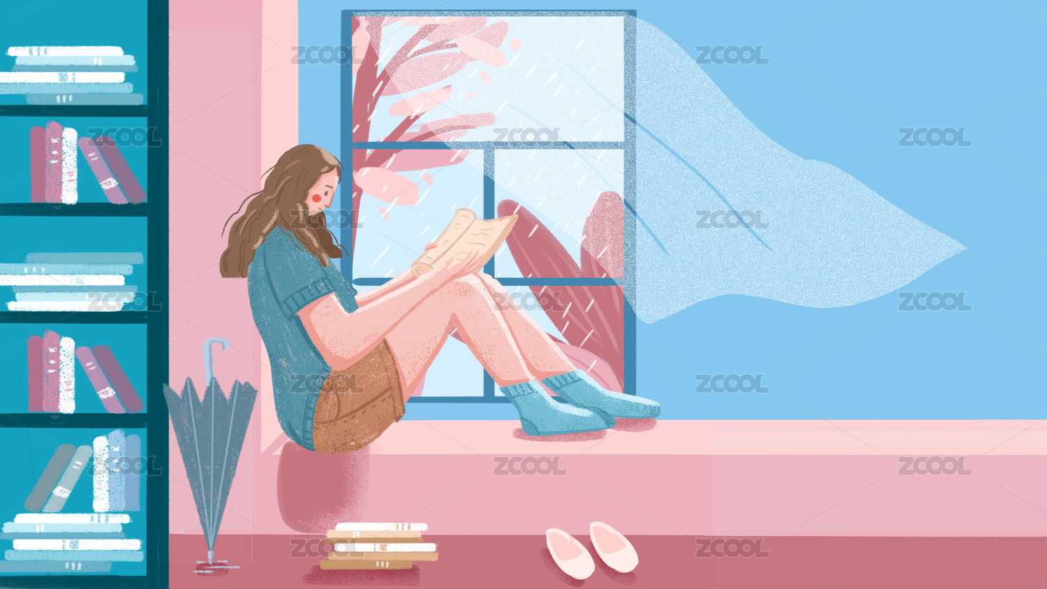 开学季女孩在书籍的海洋里阅读获取更多知识,矢量扁平潮流概念插画