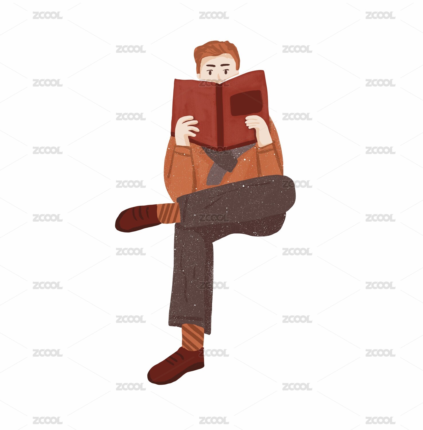 阅读书籍的男孩与狗,矢量扁平概念插画