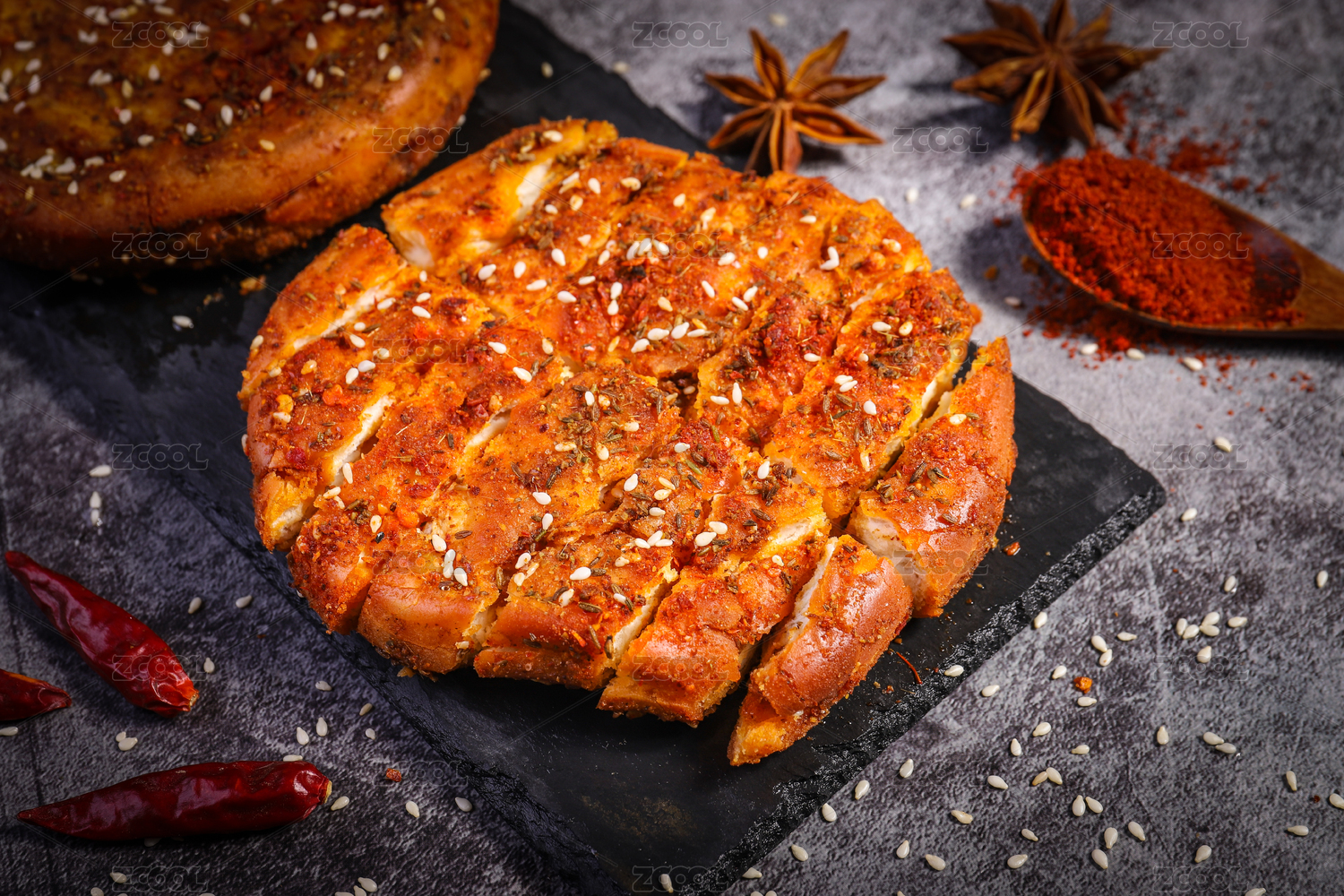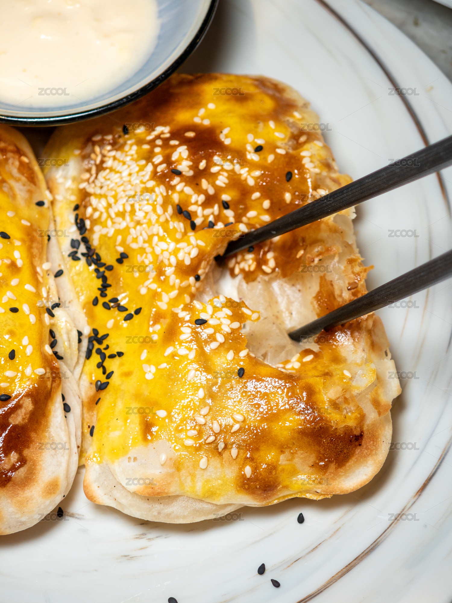 配蘸酱的芝麻手工烤饼
