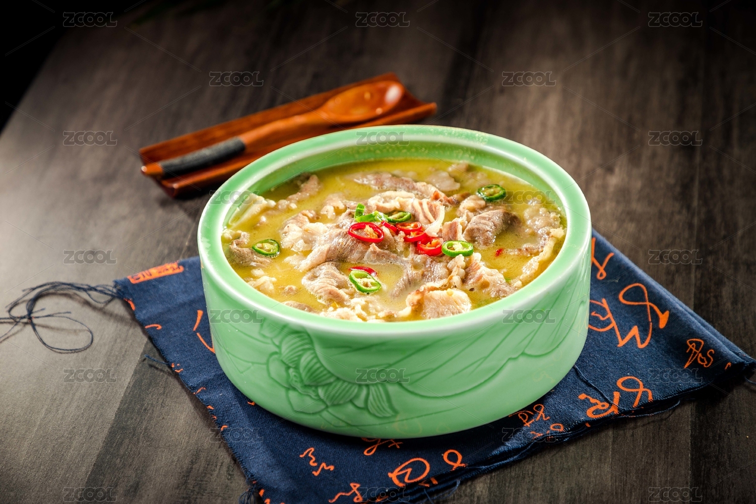 青色瓷盆里的金汤肥牛肥羊煲