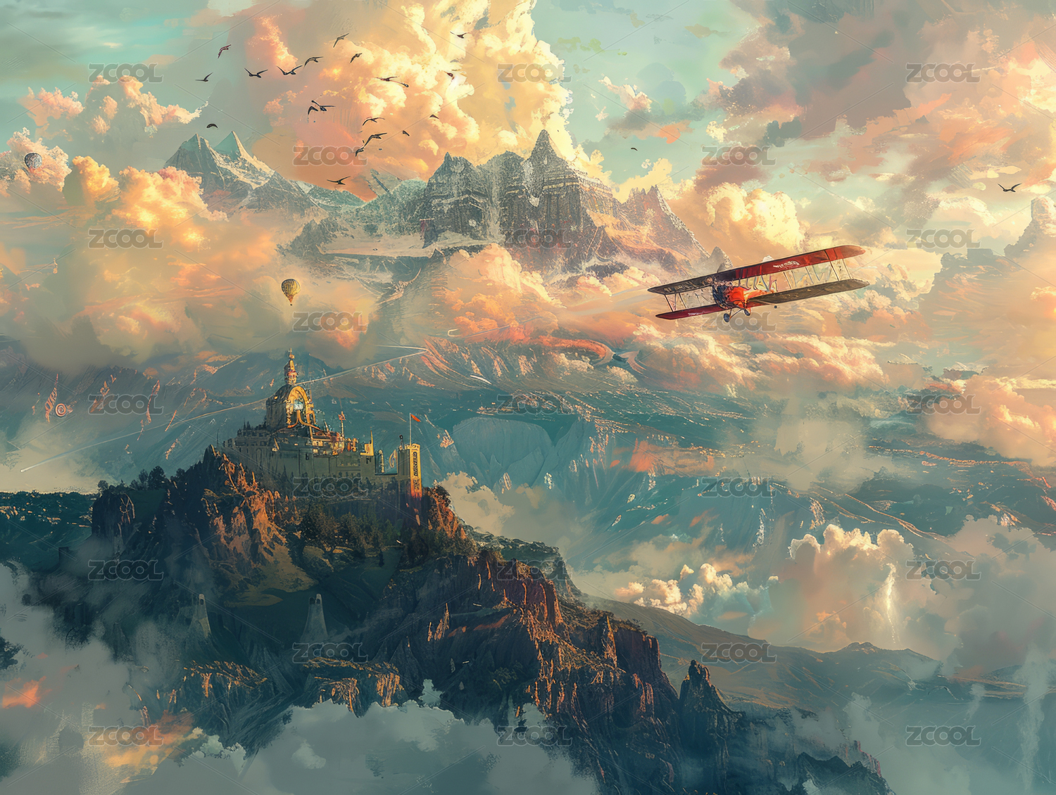 盘山公路尽头的神秘建筑堡垒,数码绘画。