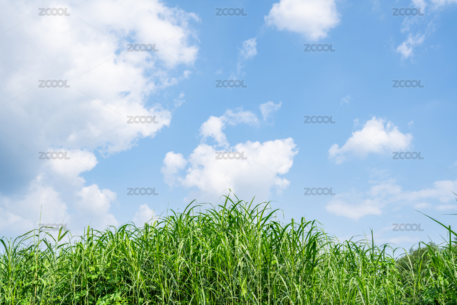 蓝天白云下的芦苇滩